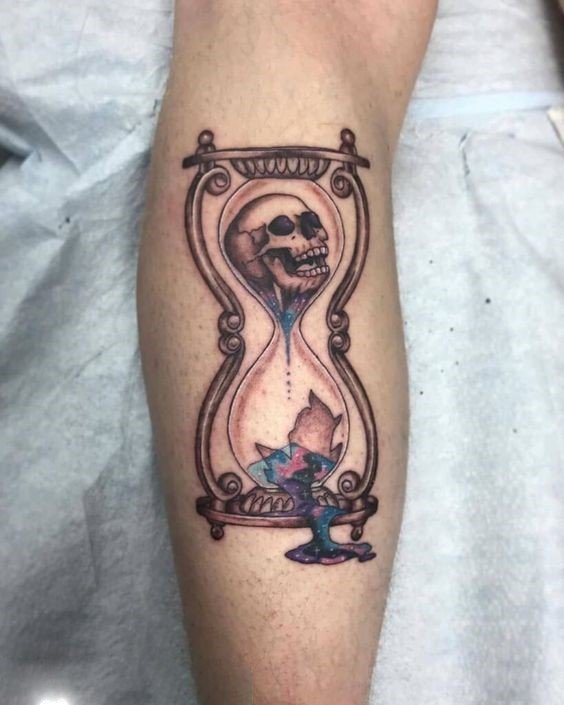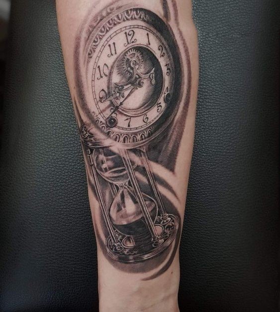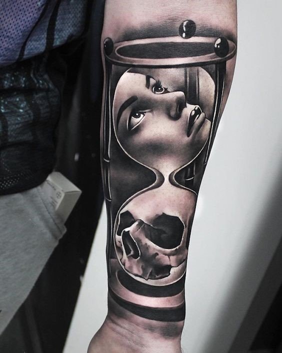 Az a tetoválás, amelyben az óra ugyanabban a kompozícióban koponyával van ábrázolva, vagy a halál kezében van, azt sugallja, hogy az idő könyörtelen. Ebben az esetben a tetoválás tulajdonosa mintegy emlékezteti az egész világot, hogy amíg a homok még mindig ömlik az órájában, minden napját a legteljesebb mértékben kell élnie.
