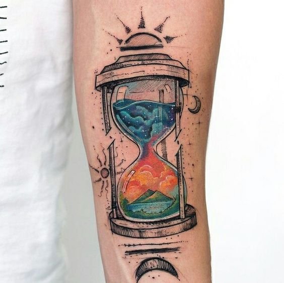 Az egyik ilyen kép egy homokóra tetoválás. Egy ilyen vázlat leggyakoribb jelentése az időhöz, annak mulandóságához kapcsolódik. Általában ezt a tetoválást azért választják, hogy emlékeztesse Önt arra, hogy az idő múlik, és nem szabad pazarolnia, értékelnie kell minden megélt percét. A különböző kultúrákban egy ilyen kép az ember mértékletességét, kiegyensúlyozott és nyugodt karakterét jelzi.