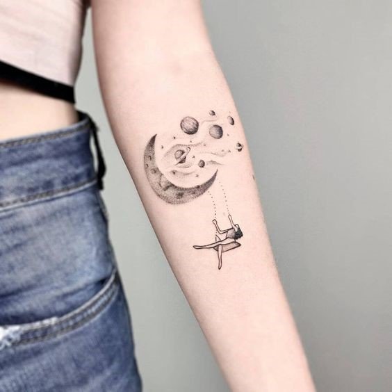 Úgy gondolják, hogy a hold olyan jel, amely szerencsét vonz, és fontos ügyek védőszentjeként is szolgál. A hold képével ellátott tetoválás univerzális. A férfiak a hold kitöltésekor saját értelmezésüket adják bele a képbe. Például egy félhold a férfi testen hangsúlyozza a tulajdonos erejét és brutalitását, és szerencsét vonz neki. A lányok számára a félhold képe is nagy keresletet mutat, de a megnevezés eltér a férfi értelmezéstől. Hiszen a görög mitológia szerint a hold védőnője Artemisz, a vadászat istennője volt. Az értelmezés és a rejtély mellett egy hold képével ellátott tetoválás romantikát ad a lányoknak. Egy hold tetoválás színben és fekete-fehérben egyaránt lenyűgözőnek és titokzatosnak tűnik.