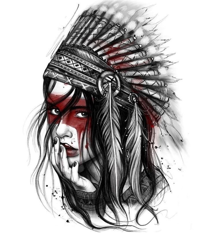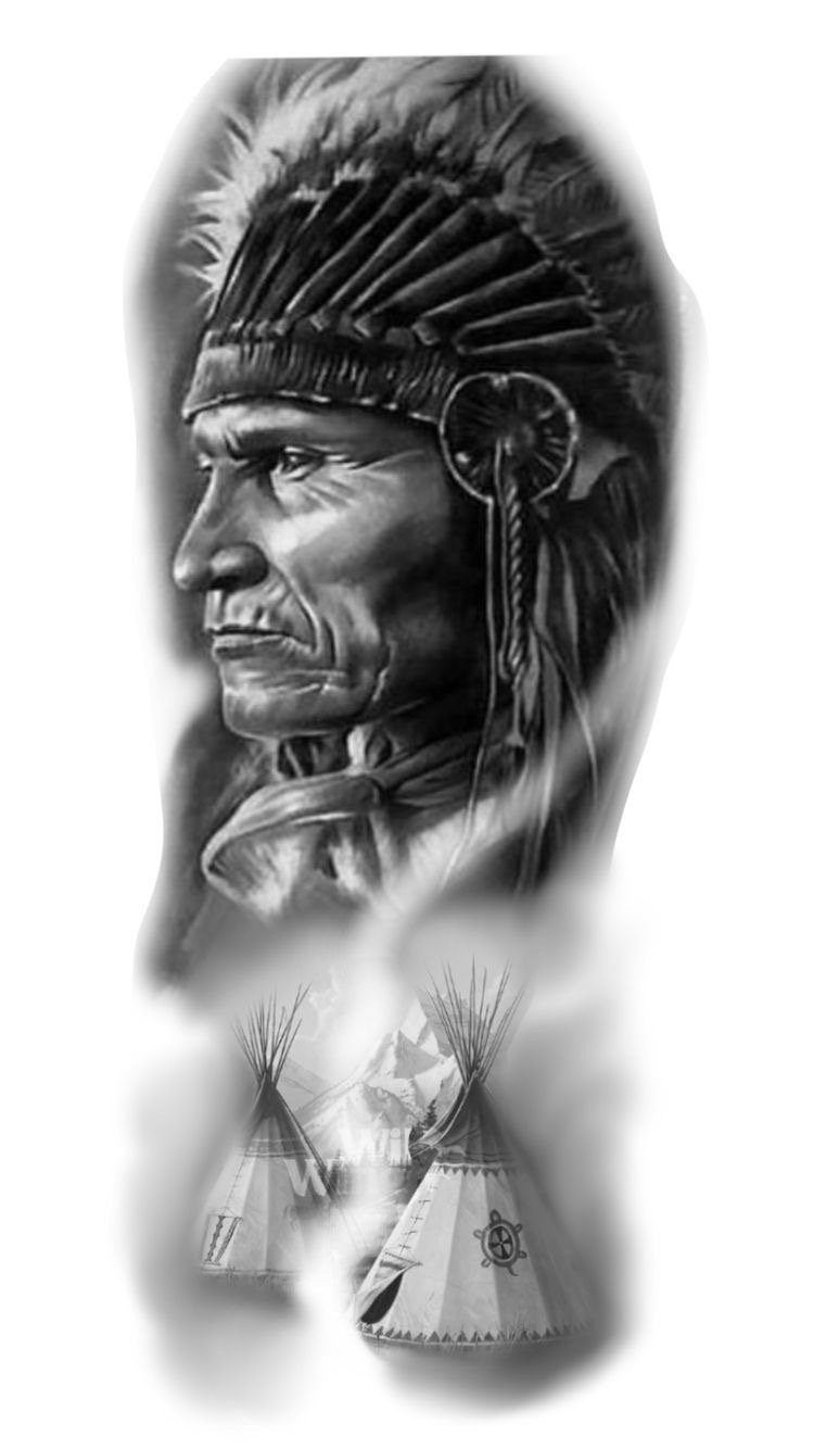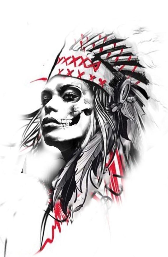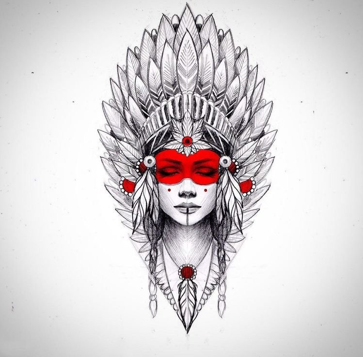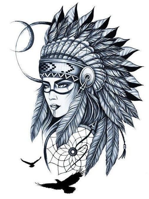 A tetoválásokban az indiánokat általában mindig madártollból készült fejdíszben és hagyományos arcfestéssel ábrázolják. De minden kép különleges cselekményt tartalmaz, és teljesen egyedi. Egy indián vázlata mindig felkelti a figyelmet, elbűvöli szokatlanságával és szépségével.