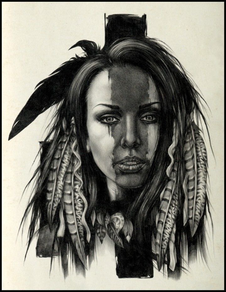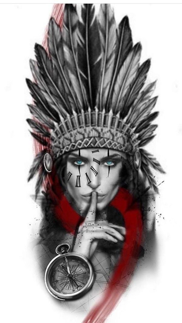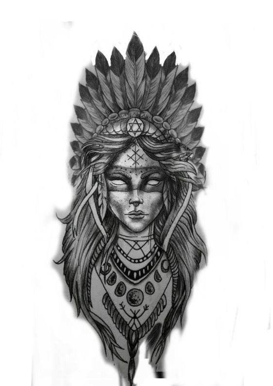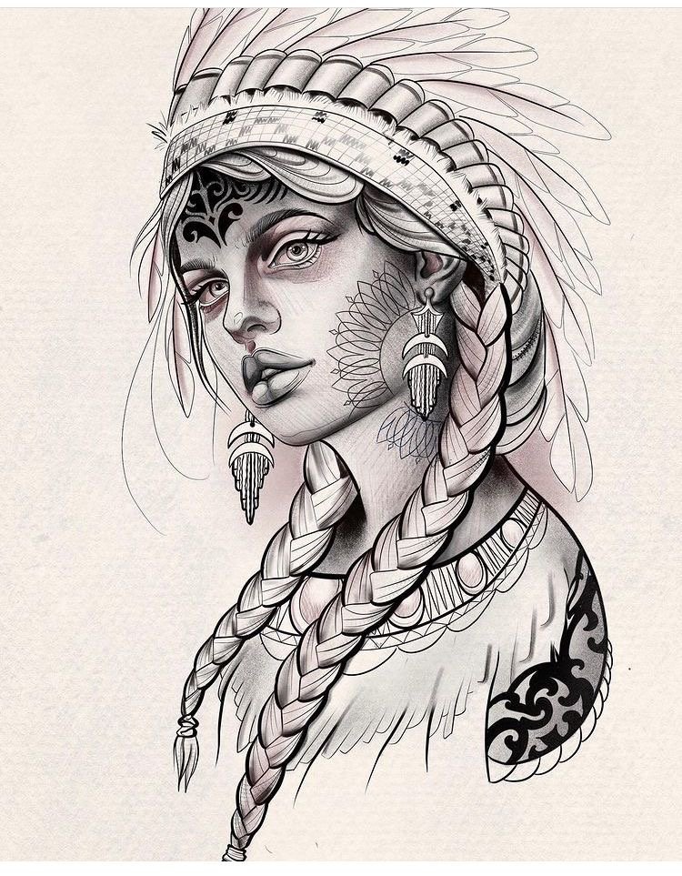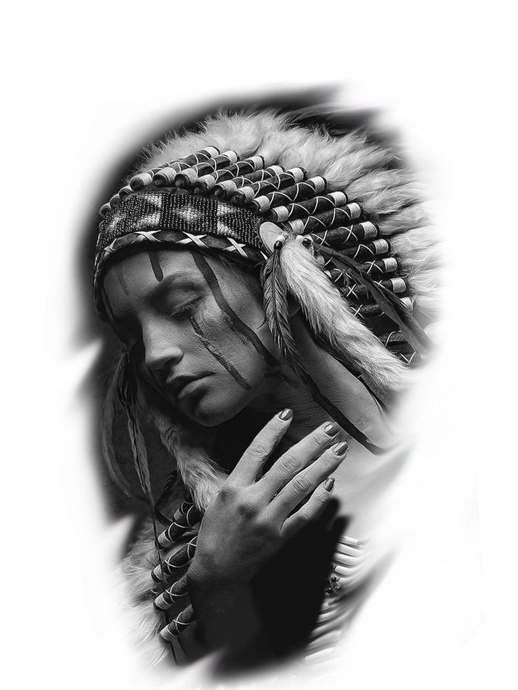 A tetoválásokban az indiánokat általában mindig madártollból készült fejdíszben és hagyományos arcfestéssel ábrázolják. De minden kép különleges cselekményt tartalmaz, és teljesen egyedi. Egy indián vázlata mindig felkelti a figyelmet, elbűvöli szokatlanságával és szépségével.