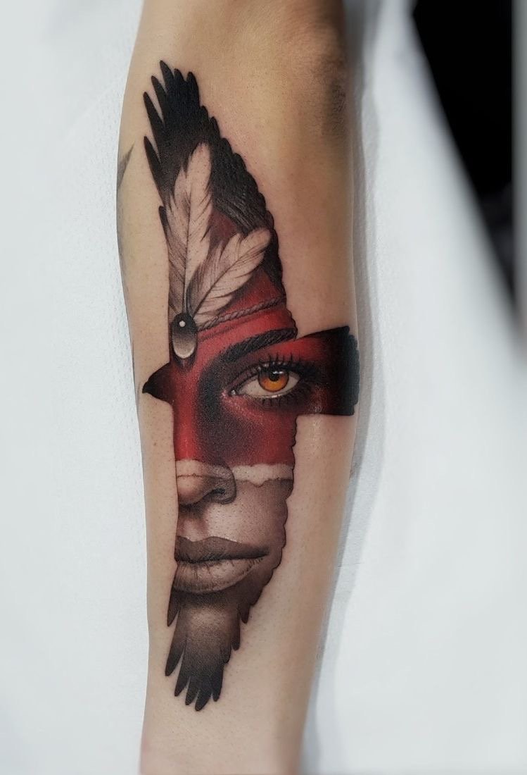 Az indiánt ábrázoló tetoválás valósághű stílusban néz ki a leglenyűgözőbben, az élénk színek túlsúlyával. Ami a tetoválás alkalmazásának helyét illeti, a kép a legjobban a test nagyméretű területein néz ki, például a háton, a mellkason, az alkaron. De a tetoválásra nincsenek korlátozások, így a vázlat a test bármely kívánt részét díszítheti. Mindenesetre egy ilyen viselhető képpel nagyon lenyűgözően fog kinézni, a járókelők és a körülötte lévő emberek sok pillantását vonzza a személyére.