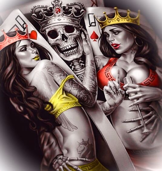 A szerencsejátékosok gyakran kártyás vázlatot választanak, úgy gondolják, hogy a testen lévő kártyák képe szerencsét hoz tulajdonosának. Ez nem csak a kártyázó emberekre vonatkozik, hanem az üzletemberekre, a szerencse szerelmeseire is.