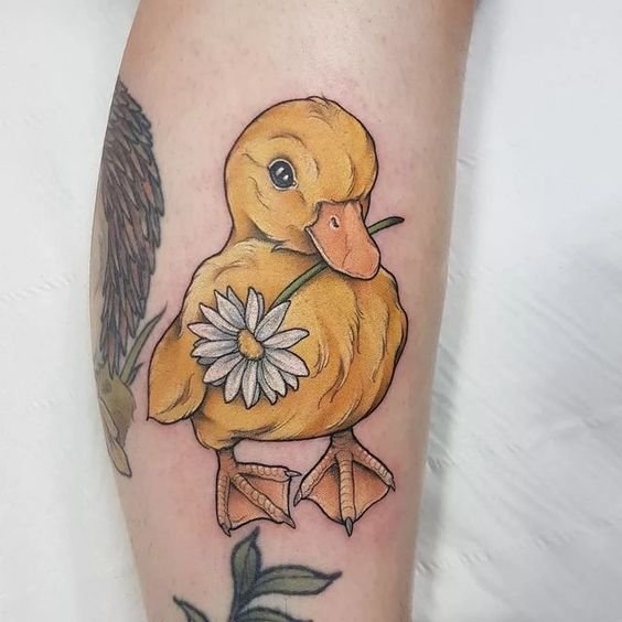 Ezt a hordható képet férfiak és nők egyaránt gyakran alkalmazzák testükre, mert ez a földiesség, valamint a kitartás szimbóluma. Ezenkívül a kacsa tetoválást kedvező jelnek tekintik, amely számos pozitív megjelöléssel rendelkezik.