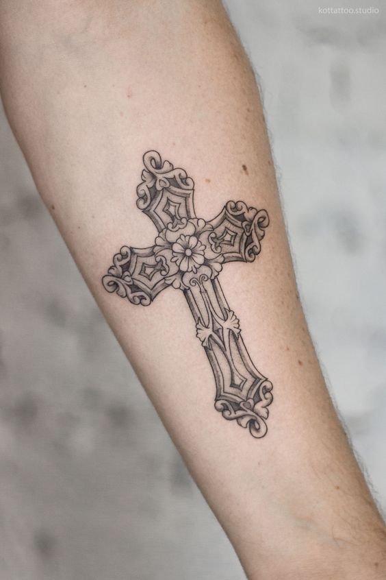 A kereszt vázlata lakonikus formájával vonzza az ügyfeleket, valamint azzal, hogy a kép kiegészíthető különféle preferált elemekkel. A tetoválást fekete-fehér változatban és különböző színtónusokkal is elkészítjük. Nincsenek korlátozások, minden a tetováló művész preferenciáitól és képzeletétől függ.