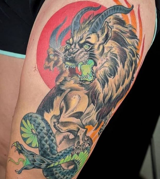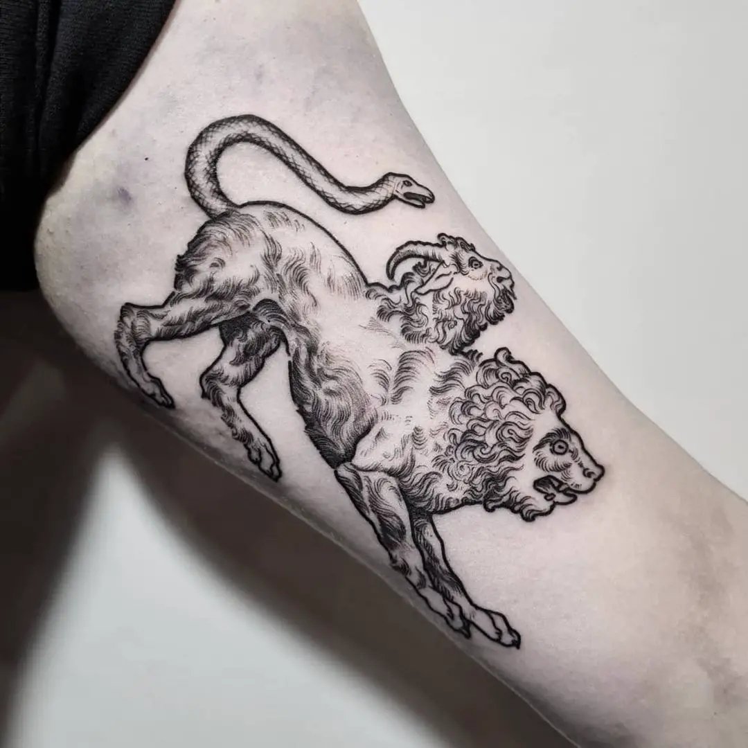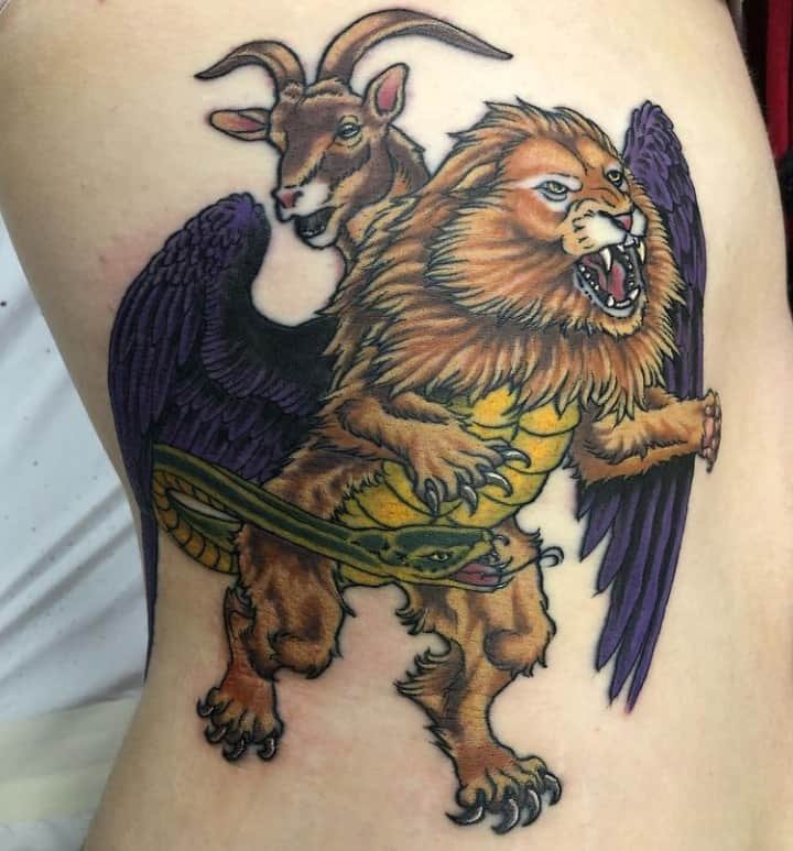 A különböző népek mítoszai alapján a kiméra gonosz és pozitív lényként is megjelenik. A kiméra tetoválás szimbolizálhatja a jó és a rossz közötti örök harcot.