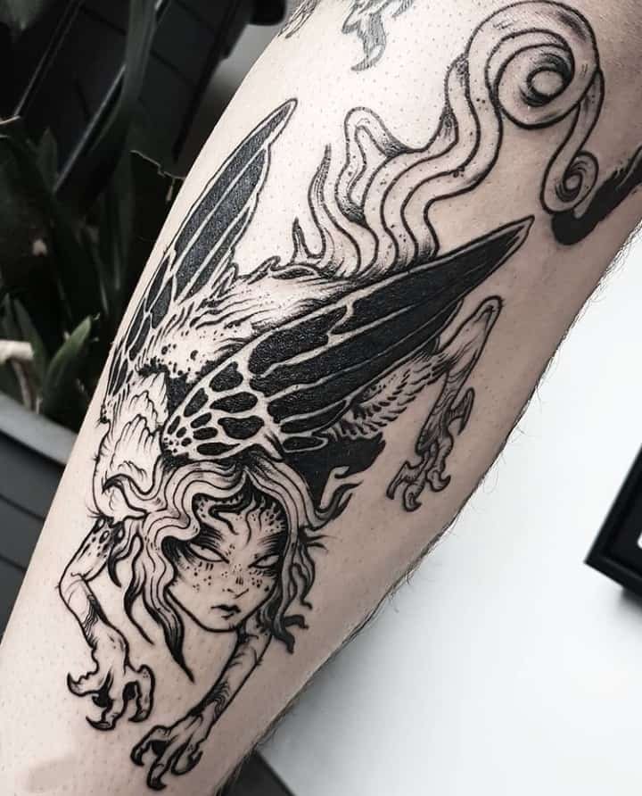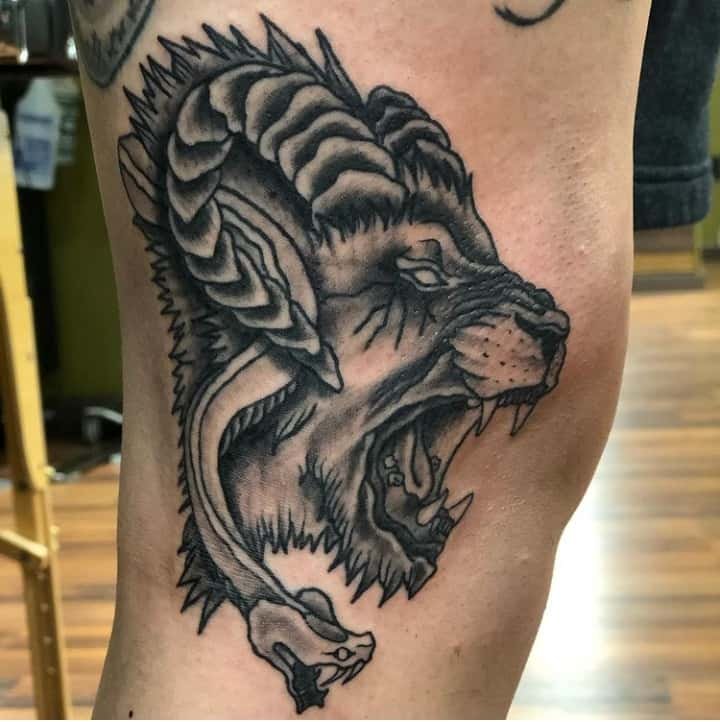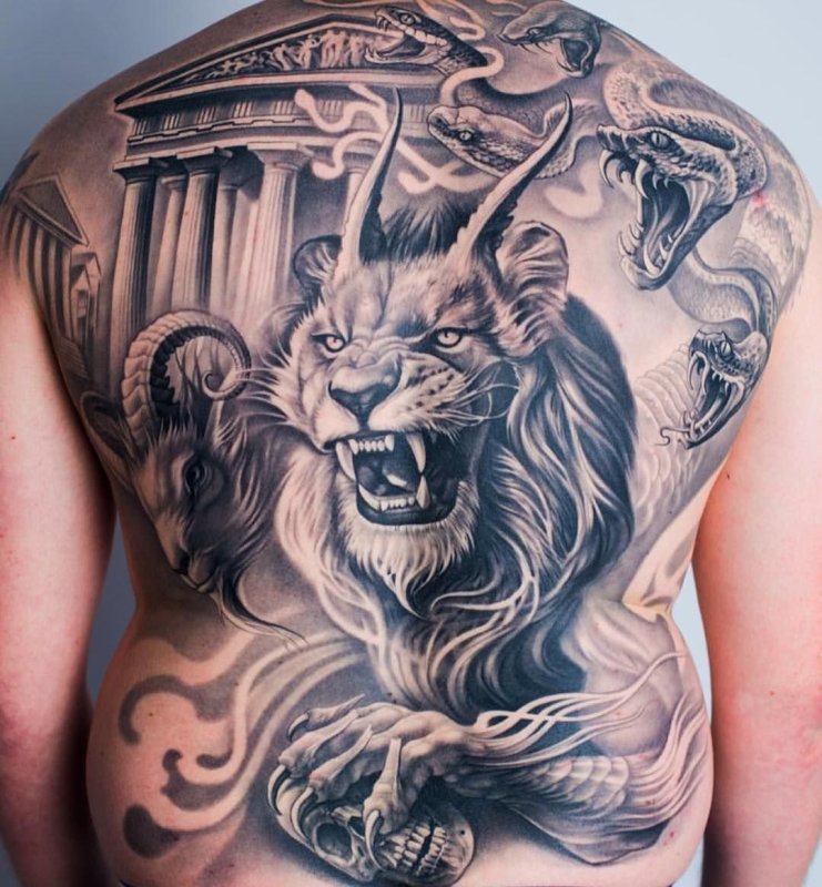 A kiméra tetoválás meglehetősen eredetinek tűnik a biomechanikai stílusban, amelynek megkülönböztető jellemzője a mechanikai részletek.