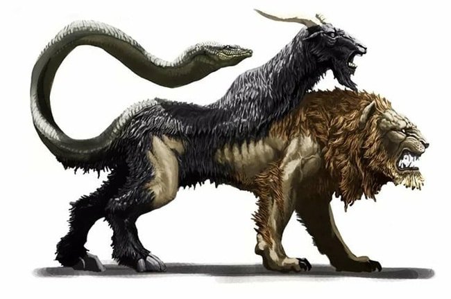 Elől az oroszlánfej, hátul egy kecskefej, a farok helyén pedig egy kígyó. A kiméra nemcsak a külseje miatt volt félelmetes, hanem azért is, mert tüzet tudott okádni a szájából. A mitológia szerint csak az ókori görög hős, Bellerophon tudta megölni ezt a lényt.