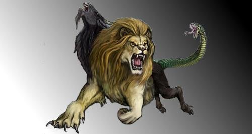 Ennek a lénynek három feje van: egy oroszlán feje, egy kecske és egy kígyó.