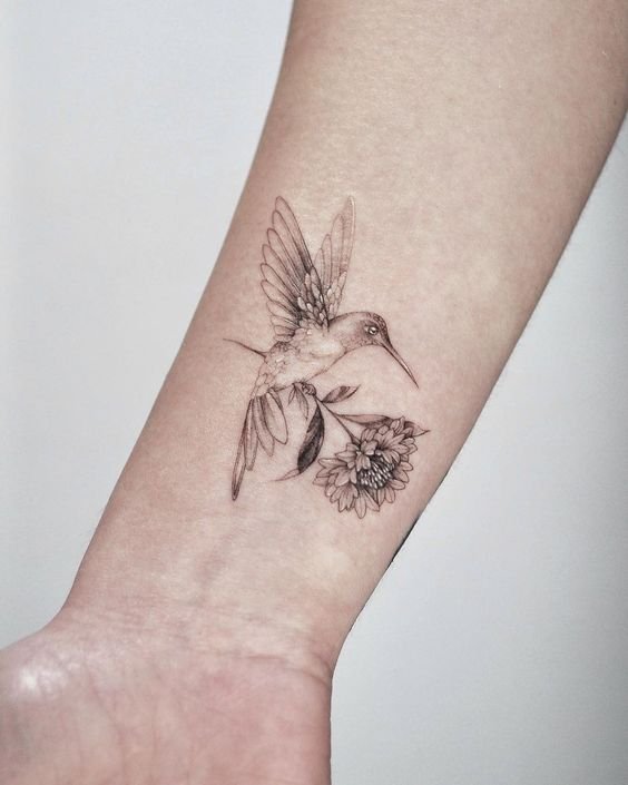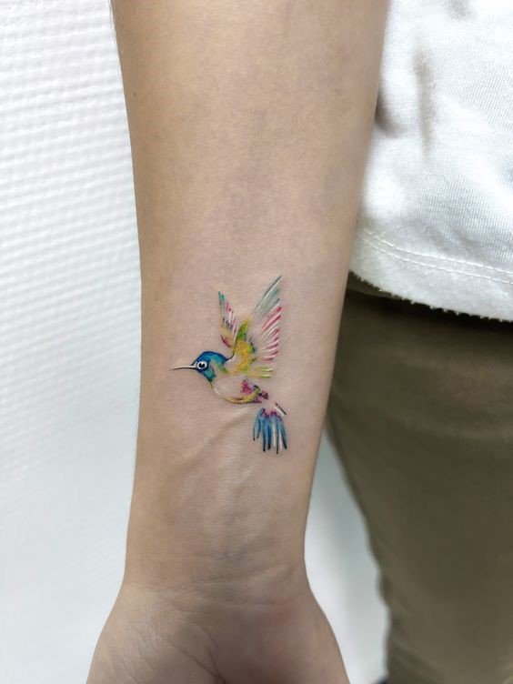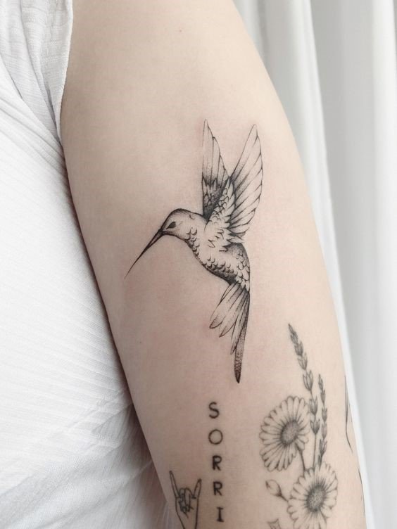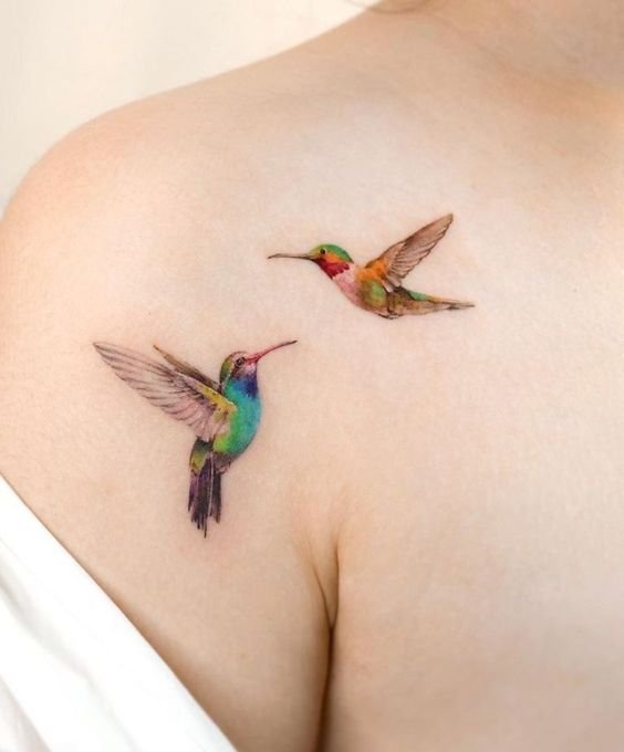A kolibri a legnépszerűbb a nők körében, a pillangók és virágok tetoválásai mellett. A kolibri a hölgyek számára könnyedséget és hihetetlen kecsességet jelent. A férfiak is a kolibri képét választják tetováláshoz. Bár a férfi tetoválásokban gyakran jelen vannak a sötét tónusok és némi agresszió, a kolibri jelentése ettől nem változik, továbbra is a béke, a boldogság és a gondoskodás szimbóluma. Ezenkívül a kolibri a ritkaság, az öröm és a fényes dekoráció szimbóluma. Ennek a csodálatos madárnak körülbelül 300 fajtája van, és mindegyik egyedi, eredeti színekkel, farokkal stb. Mindenki választhat egy egyedi madárképet. Mivel a kolibri folyamatosan mozgásban van, a kép rajzolásának helyeit is mobilnak választják. Ez lehet a csukló, a sípcsont vagy a láb, ezek a részek a legmozgékonyabbak az emberben, emiatt a kolibri élőnek és dinamikusnak tűnik.