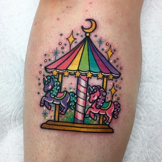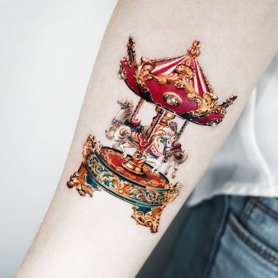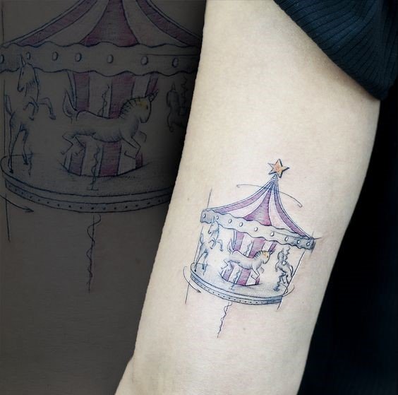 Szórakoztatóbbá és emlékezetesebbé tették a napunkat, hozzáadva a hangulatot. A körhinta tetoválás a gyermekkor szimbóluma, tulajdonosát mindig a legintimebb élmény, egy életút kezdete fogja emlékeztetni.