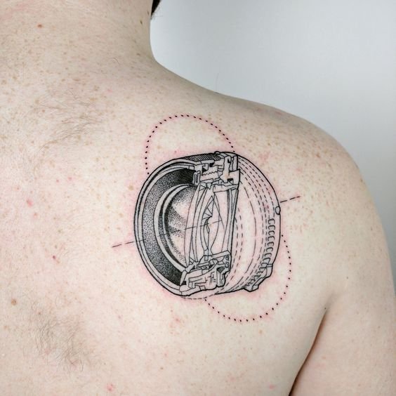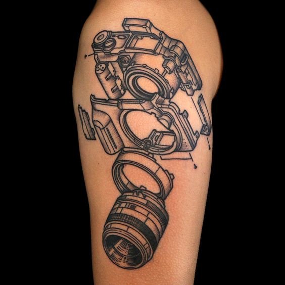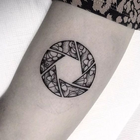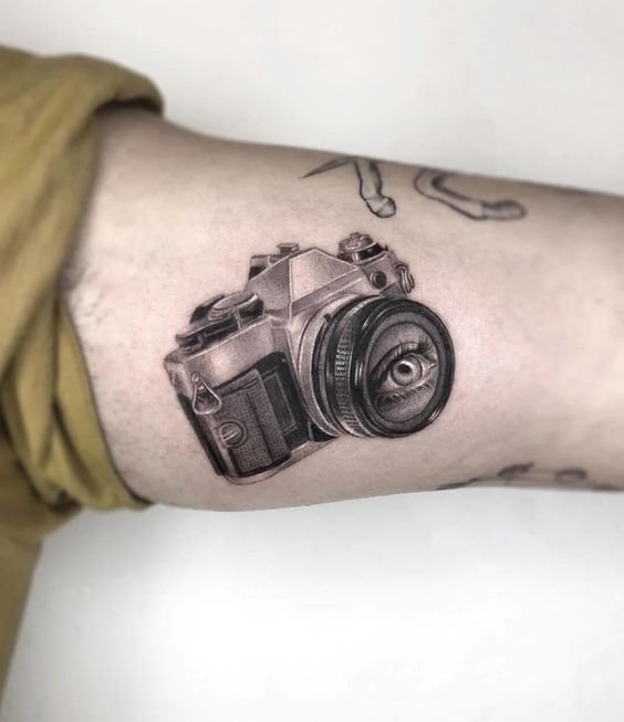 A fotósok azon emberek kategóriája, akik mindent beleadnak az ügy érdekében. Ezért a fotós testén lévő tetoválás, amely az lencsét ábrázolja, pontosan kiemeli munkája irányát. Ha egy fotós tetoválást készít egy ilyen tervről, akkor valószínűleg a vázlat valamilyen lencsemodellt tartalmaz, amely rendkívüli átviteli minőségéről ismert.