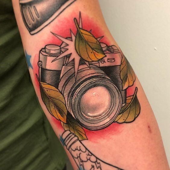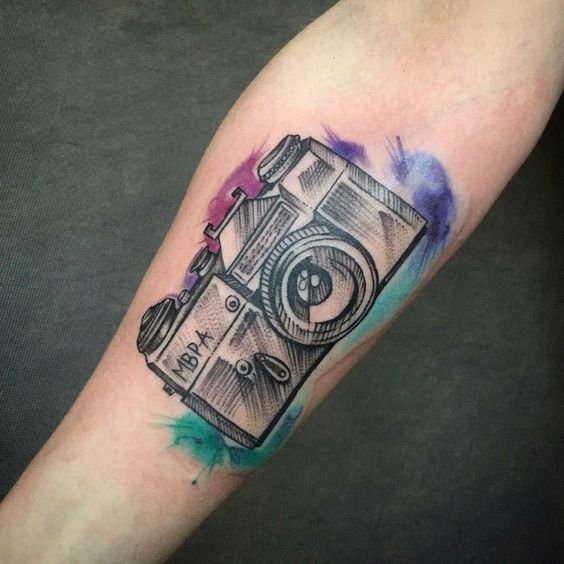 A "retro" téma rajongói számára mindig felvehet egy vázlatot egy régi fényképezőgép képével, amely stílusuknak megfelelő lesz. Ha nem talál vázlatot, mindig felveheti a kapcsolatot egy tetováló mesterrel, aki az Ön által választott stílusban dolgozik. Így pontosan azt kapod, amit szeretnél.