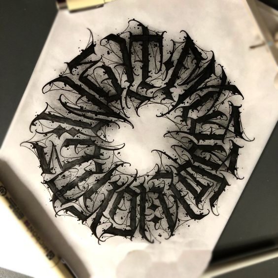 A "lettering" vázlatok olyan feliratok, amelyek betűkből álló szimbólumok egyedi kombinációjával rendelkeznek. Ha pontosabbak akarunk lenni, a betűk művészi tetoválással, különféle betűtípusokkal létrehozott felirat formájában kerülnek fel a bőrfelületre. Ez a tetoválás nagyon érdekesnek, vonzónak és szokatlannak tűnik.