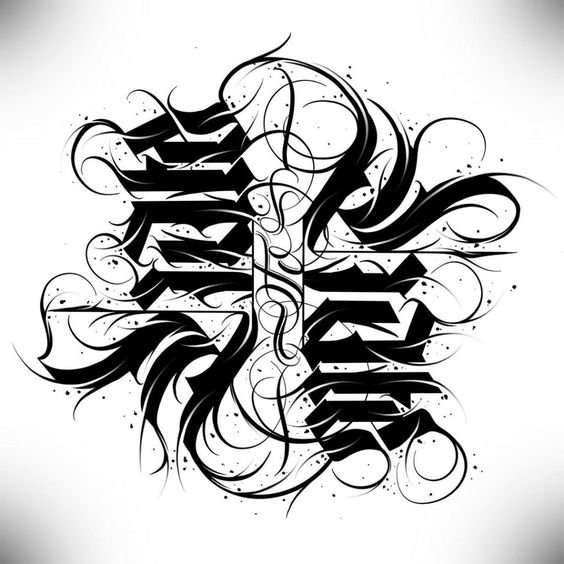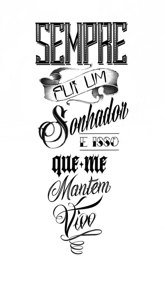 Ebben a stílusban nincsenek határok, annyi betűtípust kombinálhatunk, amennyit csak akarunk, akár egy mondatban. Ennek eredményeként egy egyedi tetoválást kapunk, amely csak a Te tested dísze lesz.