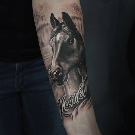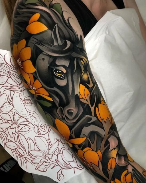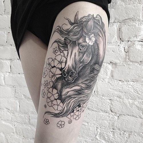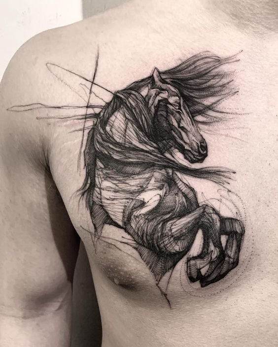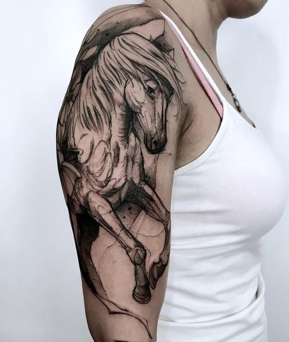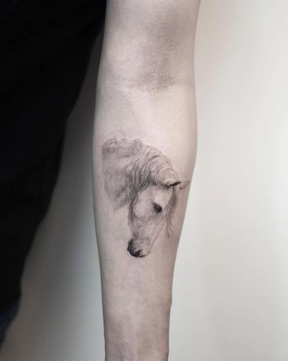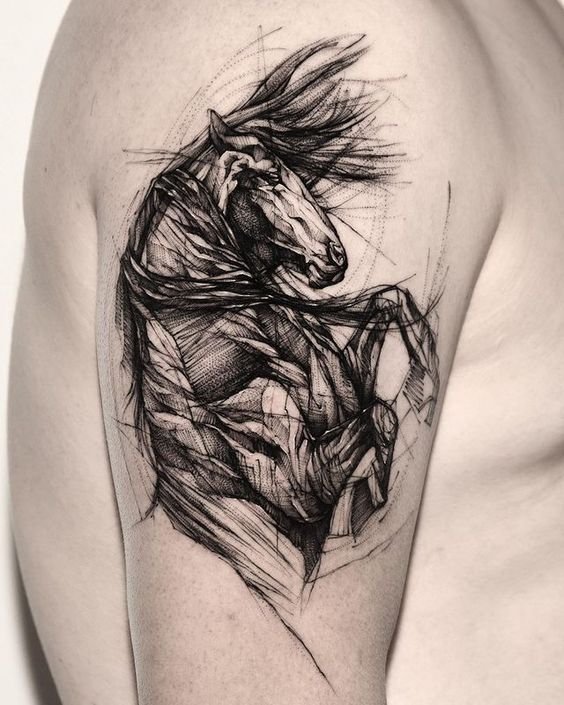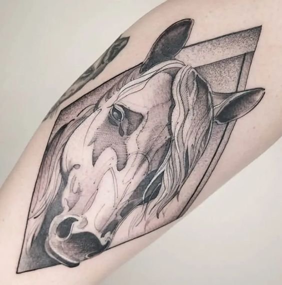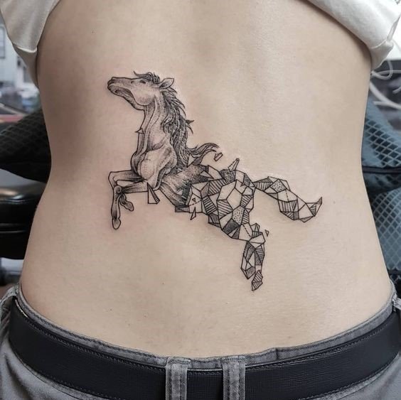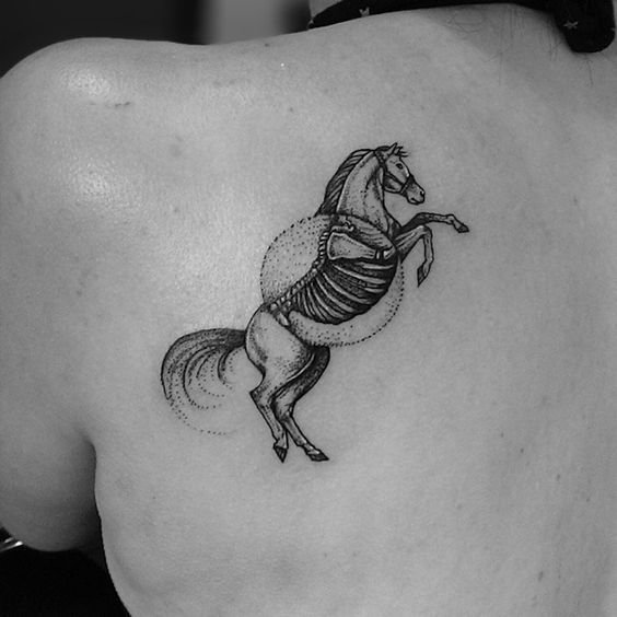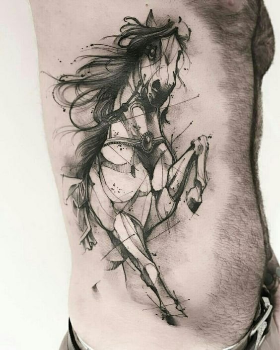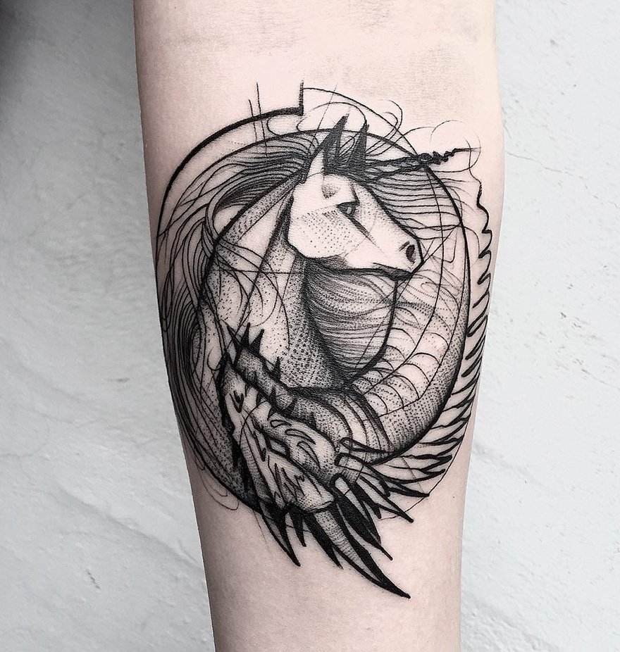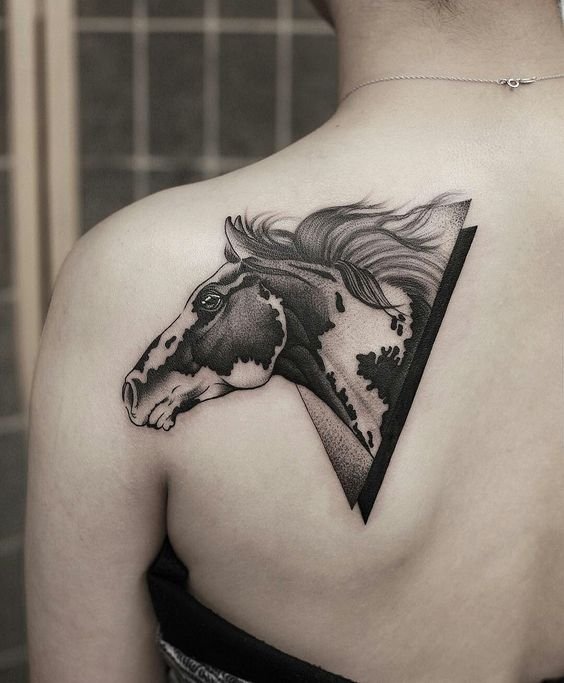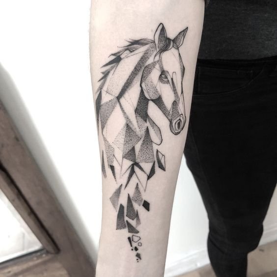 - A sematikus ábrázolásban kivitelezett ló ritkaságszámba megy, ez a tetoválás azt mutatja, hogy gazdája nagyon eredeti és érdekes ember.