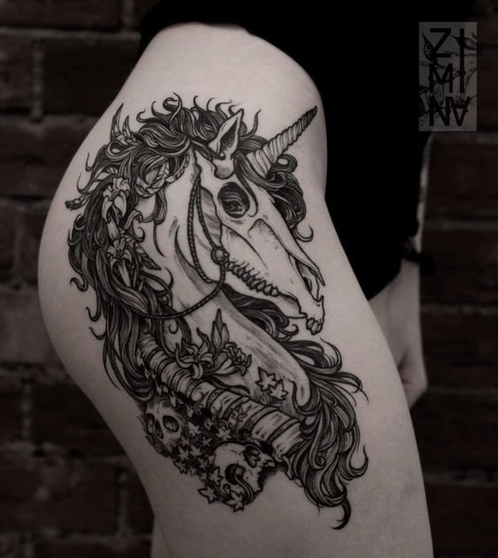 - A lókoponyával ellátott tetoválás kissé ijesztőnek tűnik, de csak pozitív tulajdonságokat hordoz, egy ilyen kép talizmánként szolgál a tulajdonosa számára.