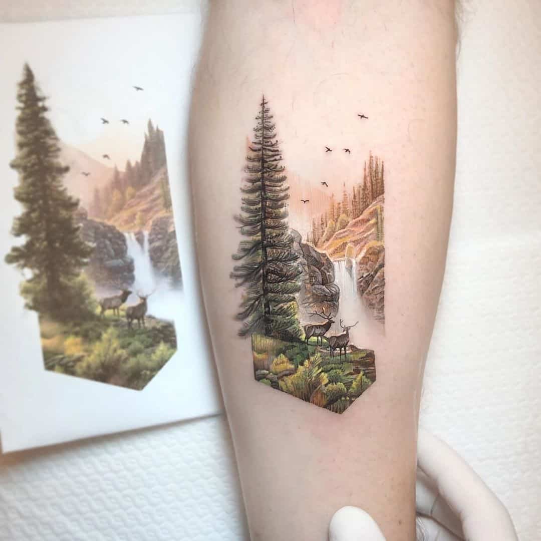 Bármely hely a testen alkalmas arra, hogy ilyen képet rajzoljanak rá, de még mindig érdemes megjegyezni, hogy ahhoz, hogy a lucfenyő minden tulajdonságát jobban megmutassa, a fát teljes magasságában kell alkalmazni. A lucfenyő tetoválás eredetinek tűnik bármilyen stílusban, legyen az akvarell vagy realizmus, minden a tetováló művész tapasztalatától függ. A lucfenyő képei között igen széles a különbség, lehet akár egyetlen fa, akár egy egész erdő. A lucfenyő tetoválás nagyon szépnek tűnik további elemekkel, például farkasokkal, madarakkal és más állatokkal. A lucfenyő a szokásos színekben és más árnyalatokban is kivitelezhető, amelyek nagyon rendkívüliek, eredetiek és felkeltik az emberek figyelmét. A lucfenyő képét ábrázoló tetoválás csak pozitív értelmezést hordoz, de a legfontosabb szemantikai jelentés az, amit te magad teszel a tetoválásodba.