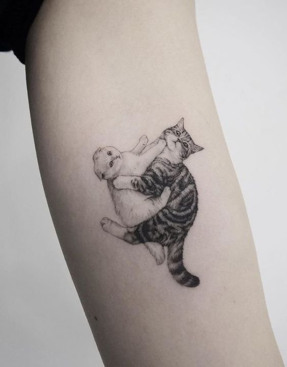 A macskákat vagy cicákat ábrázoló tetoválások általában a lányok velejárói, de a férfiak is gyakran ábrázolnak macskákat a testükön. A nőknél a macskák sziluettjei és képei többnyire vagy kecsesek, vagy ezeknek az állatoknak aranyos és bolyhos arca. A férfiak viszont jobban szeretik a macskák alkalmazását merevebb formában, képeik gyakran tartalmaznak agressziót, ragadozó tekintetet, vagy valamilyen kiegészítéssel. Az ilyen képek az ember testén az egyéniségéről beszélnek, megmutatva, hogy megvannak a saját életszabályai, és nincs szüksége másokra.