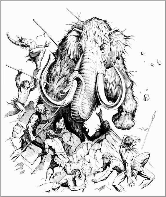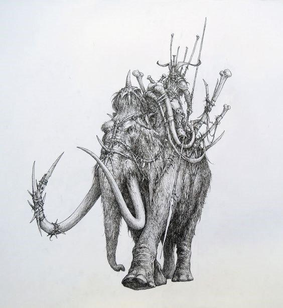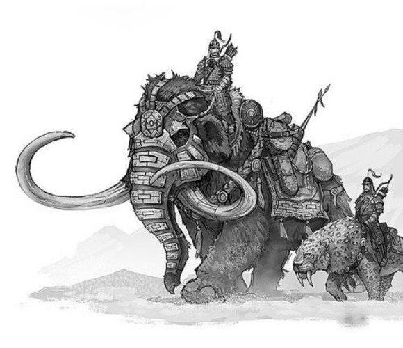 Egy erős harcos egy elefánton vagy mamuton harcias és gyönyörű munka, ezért a témának megfelelő vázlatok közül lehet választani.