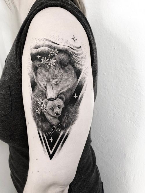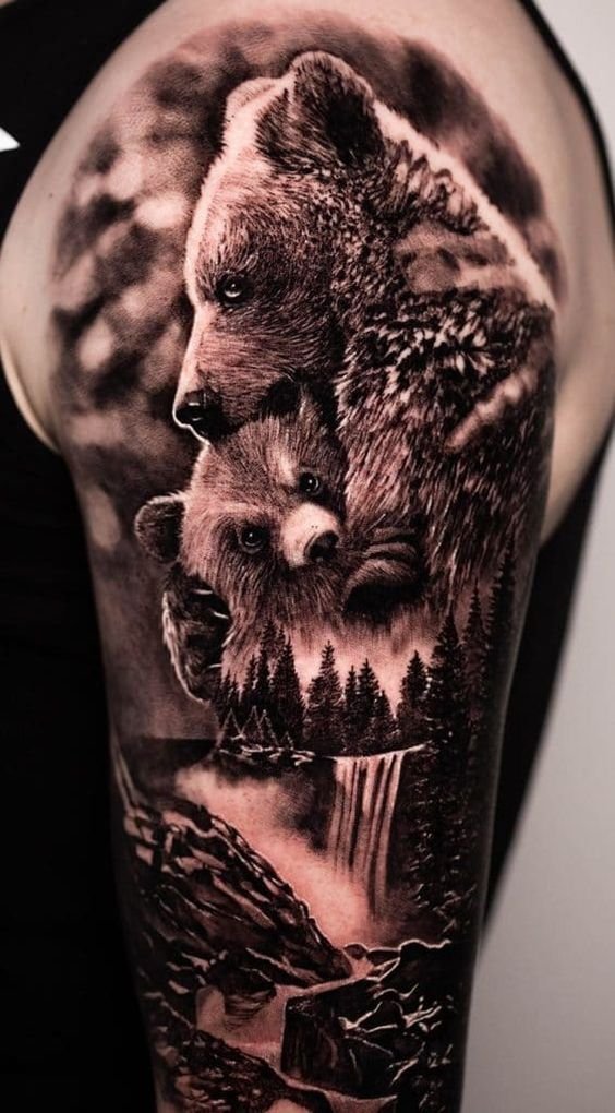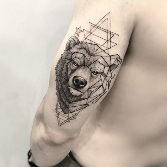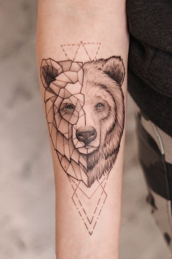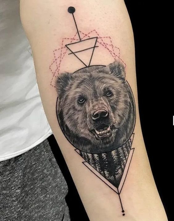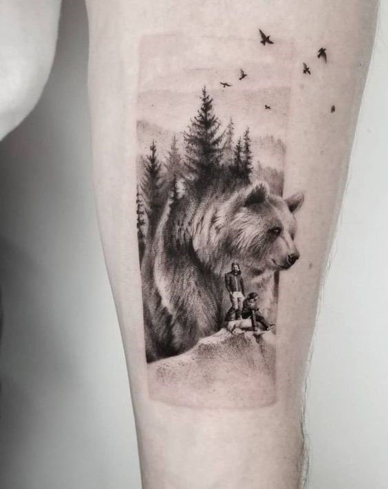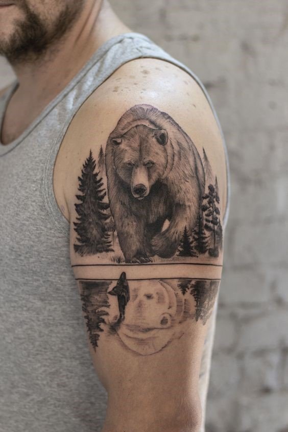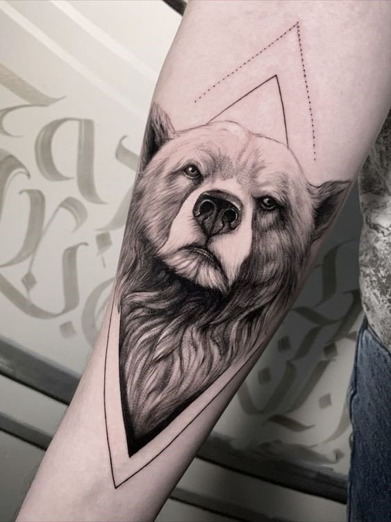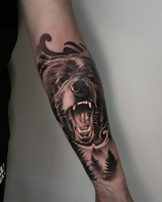 Grizzly tetoválás. Ez a kép az ember eltökéltségéről beszél, valamint arról, hogy képes megbirkózni az élet bármely nehézségével, erős karaktere van, és képes kiállni önmagáért.
