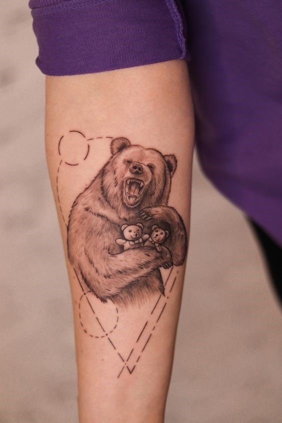 Természeténél fogva a medve egy ragadozó, rettenthetetlen, dühös, hihetetlen ereje, amelytől lehetetlen elmenekülni. De ennek ellenére a medvének van kedvessége, gyengédsége, nagyon gondoskodó, szereti és védi családját, gyermekeit minden fenyegetéstől. A medve képével ellátott tetoválást többnyire a férfiak választják, a nők inkább medvét, medvebocsot vagy macit ábrázolnak, természetesen elnevezésük eltérő értelmezésű.