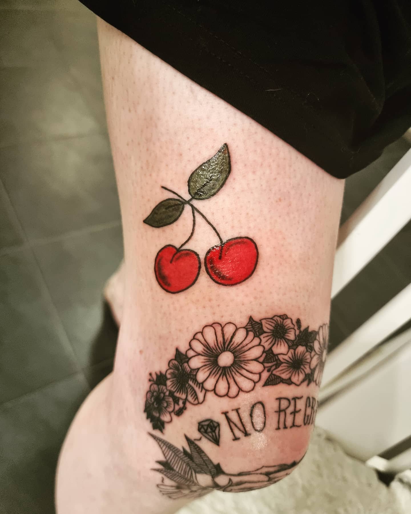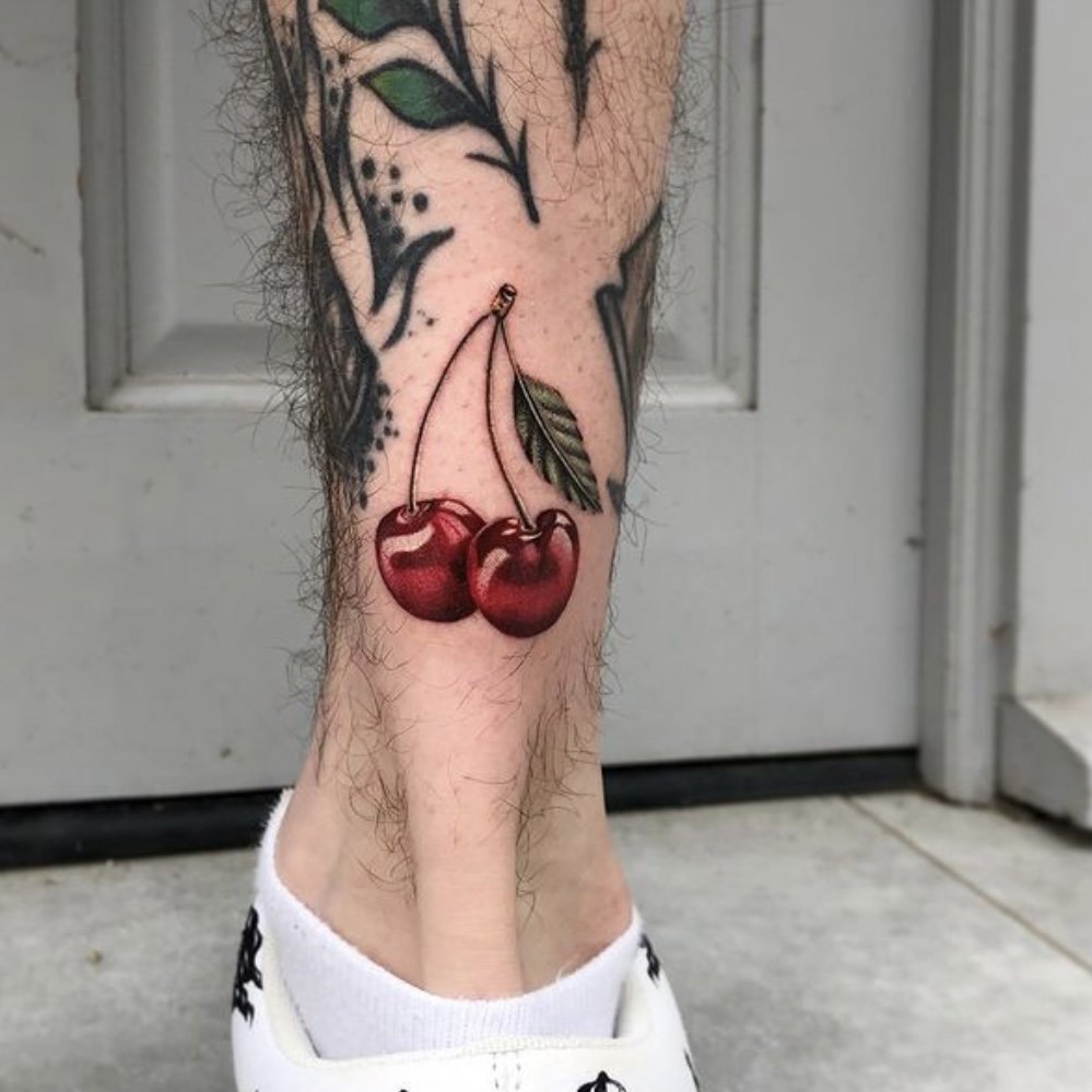 A fényes skarlát bogyók egy céltudatos nőről beszélnek, aki tudja, hogyan érje el célját. De a világos színű bogyók azt mondják, hogy egy ilyen tetoválás tulajdonosa még nem áll készen a felnőttkorra és annak nehézségeire. DE sokan inkább a testre tetoválnak minden jelentés nélkül, de csak a szépség miatt. A meggy bogyója bármilyen színű lehet: skarlát, rózsaszín, zöld, sárga stb. A meggy képe nem korlátozódik a szabványos sablonokra, engedje el a képzeletét, és hozzon létre egy csodálatos, egyedi képet, amely felkelti mások figyelmét. A legfényesebb színek segítségével a tetoválás nemcsak nagyon észrevehető, hanem nagyon fényes és stílusos is. Ha szeretnél meggybogyó képet alkalmazni a testedre, ne foglalkozz a jelöléssel, mert először magadnak készítesz tetoválást, ami azt jelenti, hogy saját különleges jelölést helyezhetsz bele.