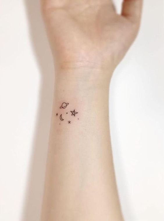 - A minimalista vázlatok nem tartalmaznak sok apró részletet és alapos rajzot. A képek megjelenése egyszerű vázlatokra, diagramokra emlékeztet. A tetoválás egy elemet és több figurából álló kompozíciót is tartalmazhat.