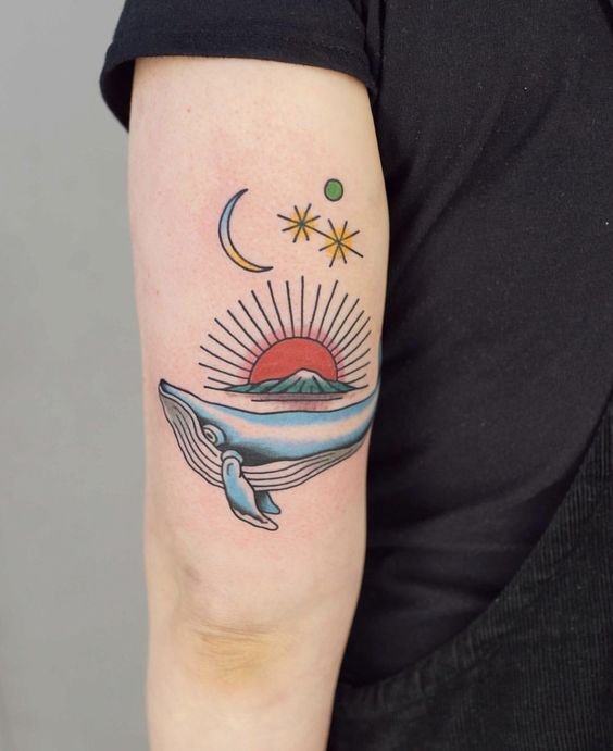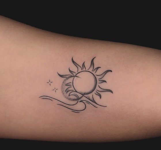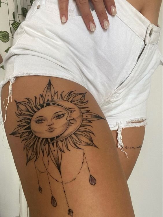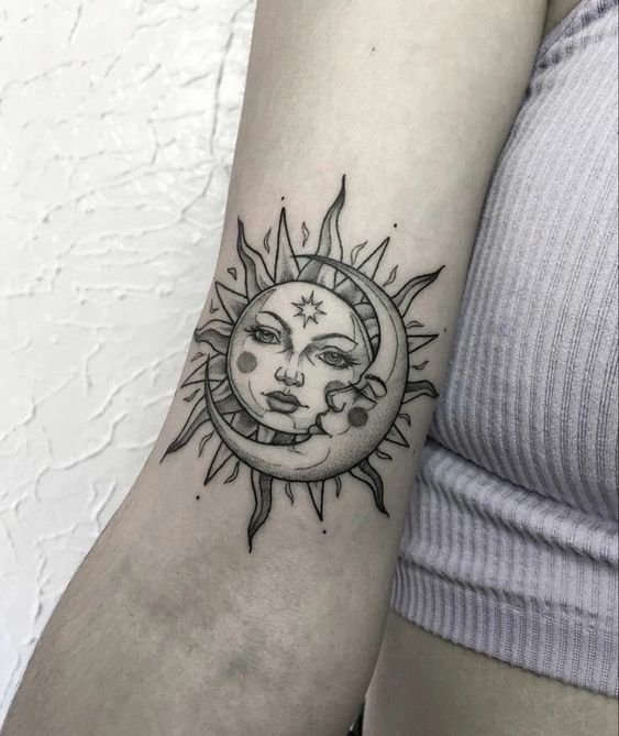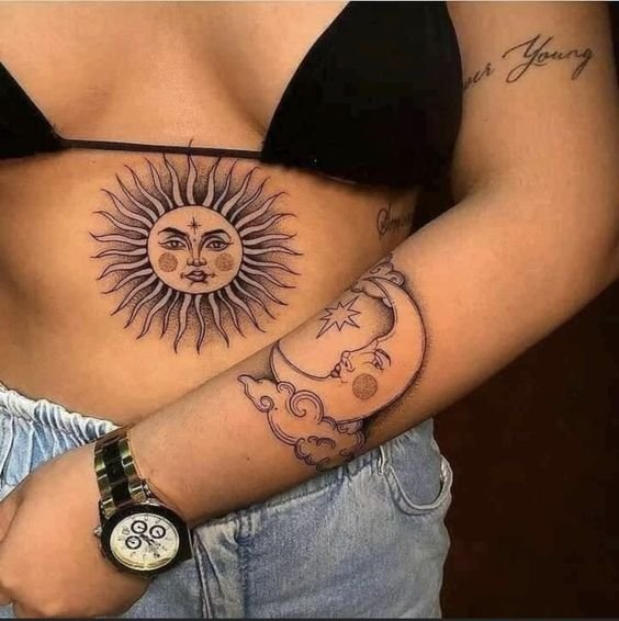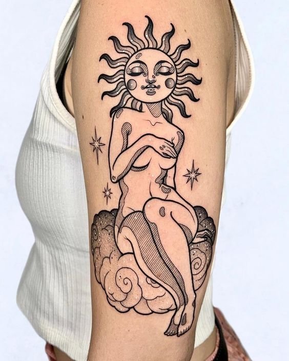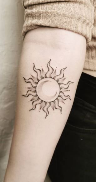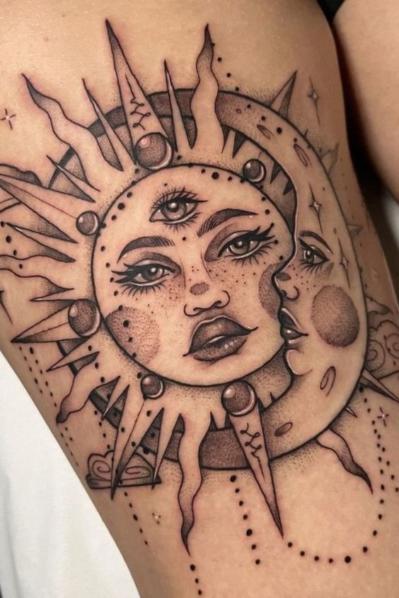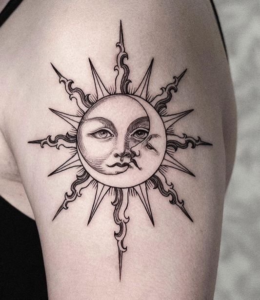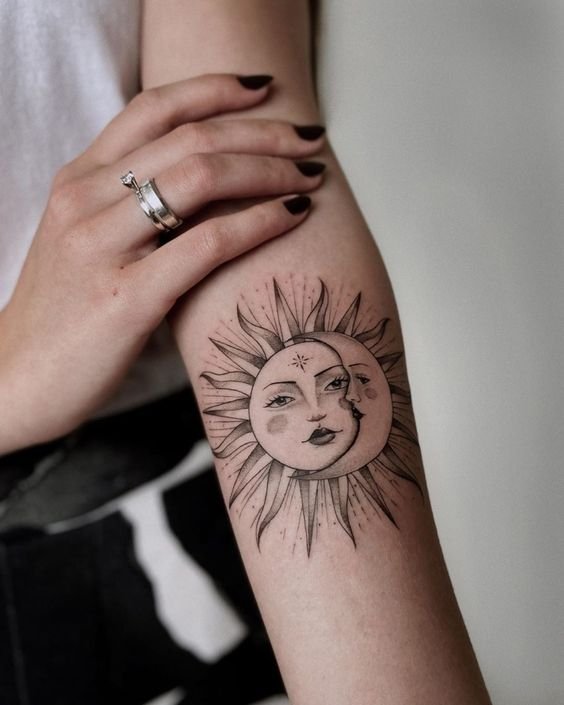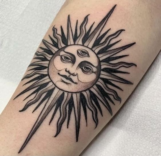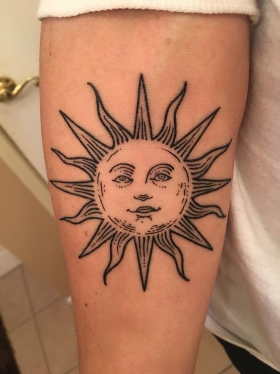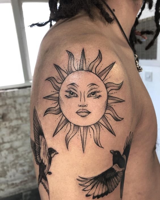 A nap univerzális kép a tetoválás művészetében, egyformán népszerű a férfiak és a nők körében.