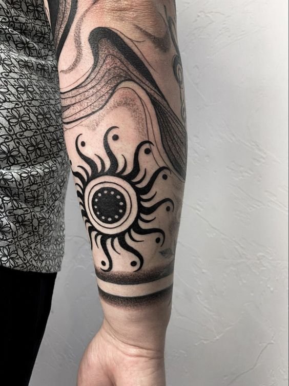 A nap tetoválás erőteljes amulettként is működik az ember számára, mivel a pozitív energia és a fény szimbóluma.