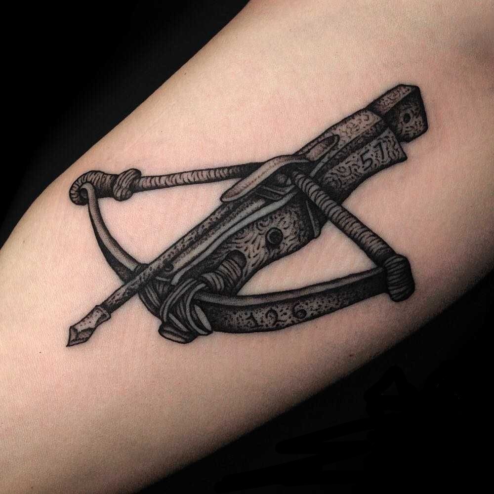 A nyílpuska - védelmet és magabiztosságot jelent, a győzelem, az erő szimbóluma. Évszázadok óta az otthonok vagy városok védelmén állt, ami energetikailag igen erőteljessé tette a ábrázolását. Mindazonáltal egy ilyen tetoválás jelentése kifinomultság, igényesség, előrelátás, nem pedig háború vagy halál.