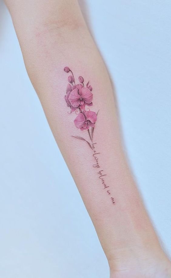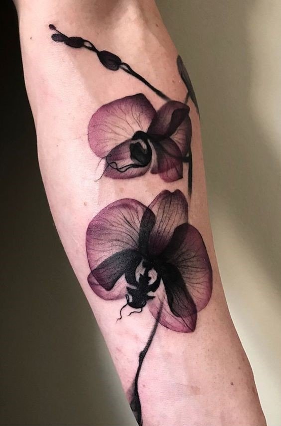 Az orchidea tetoválást teljesen különböző színekben lehet elvégezni, minden az ügyfél preferenciáitól függ.