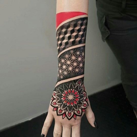 A tetoválás motívumai különbözőek lehetnek, több motívumot is kombinálhat egy tetoválásban, például kombinálhat virág- és geometrikus motívumokat, vagy kombinálhatja a geometriát madarak vagy állatok képeivel. Ezenkívül az ornamental stílusban gyakran van tengeri téma.