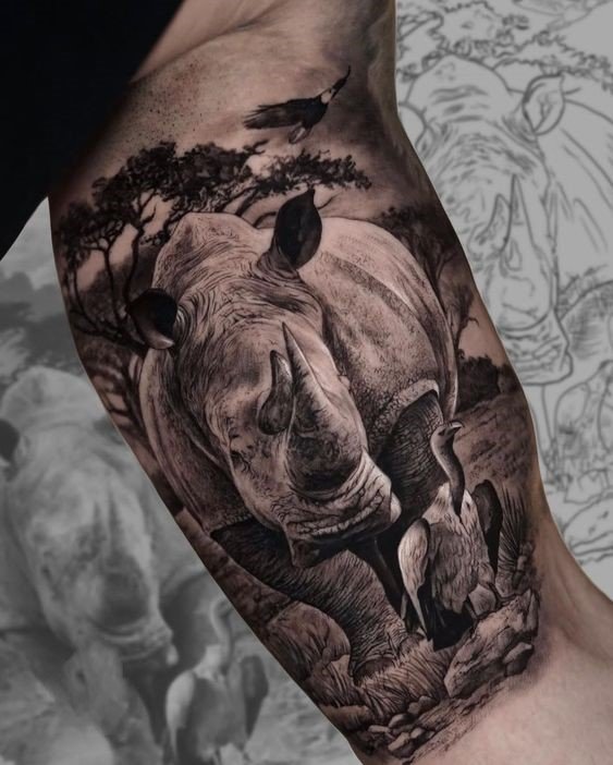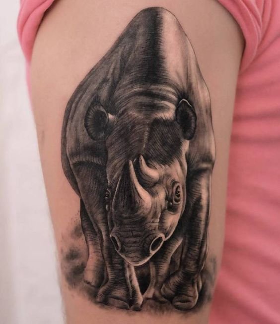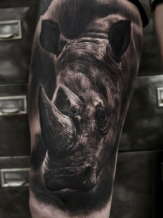 A tetoválás egy elképzelhetetlen erőt jelent, amely lehetővé teszi, hogy lerombolja az összes előtted álló akadályt. Ez a leírás egy személy fizikai erejéről és jellemének erejéről szól. A tetoválás olyan testépítők és erőemelők számára alkalmas, akik egy orrszarvú erejére hasonlítanak.