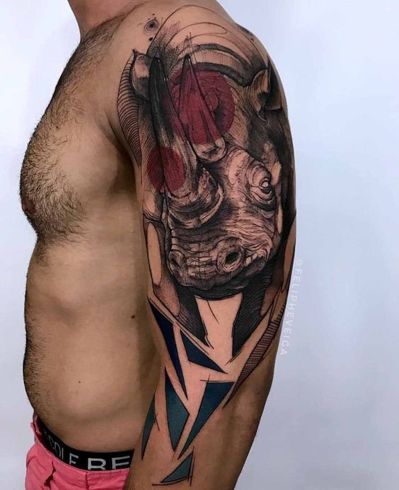 A srácok a vállrészt választják, ahol a munka még agresszívebben néz ki az izomtömegre. Ugyanez vonatkozik a lábakra is: a leginkább szivattyúzott területeken több hely van, és a munka sokkal érdekesebbnek tűnik. Rajzolhat egy orrszarvú vázlatot a hátoldalára is, ahol bőven van hely további elemek, például növény- és állatvilág alkalmazására. Különböző színekkel díszítheti az állatot, ami eredetiséget ad, és egyedivé teszi a munkát.