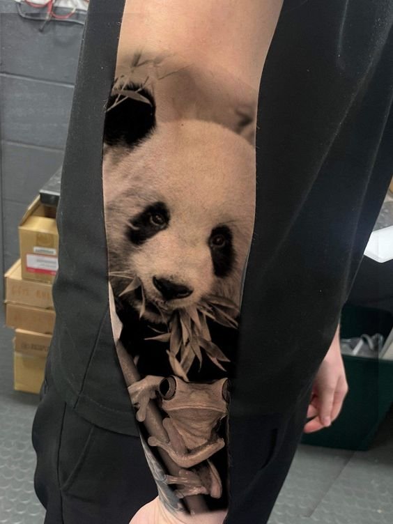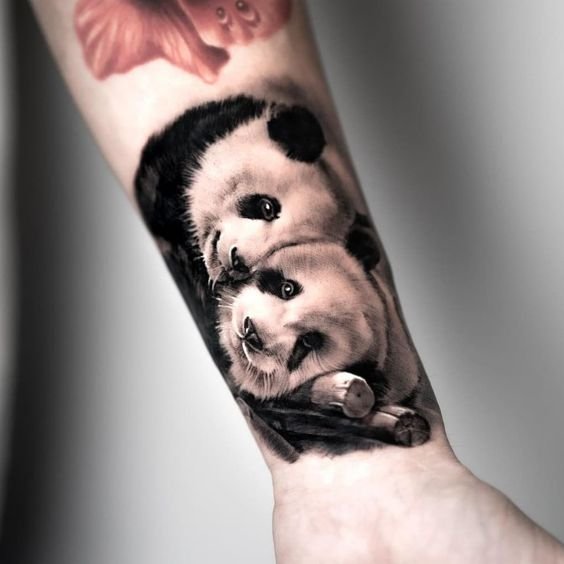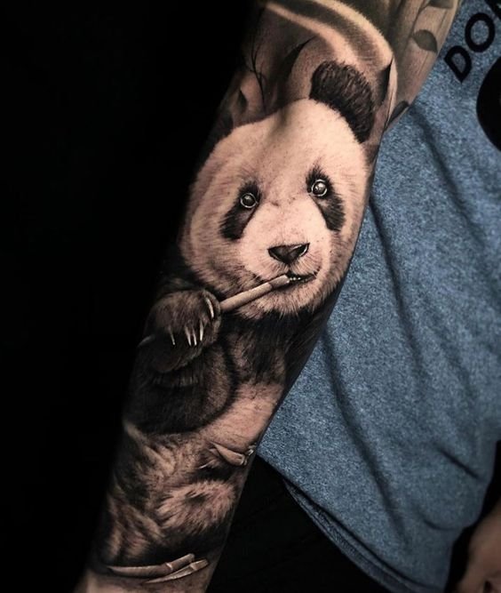Ezenkívül a panda tetoválást gyakran választják a vegetáriánusok, mert, mint tudjuk, a pandák kizárólag növényi eredetű ételeket fogyasztanak.