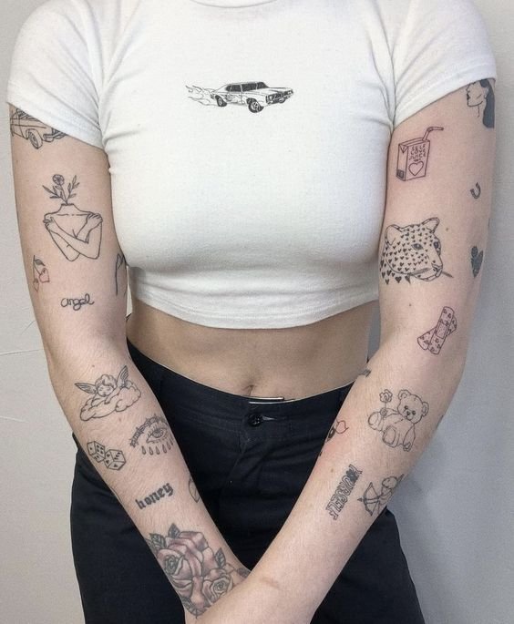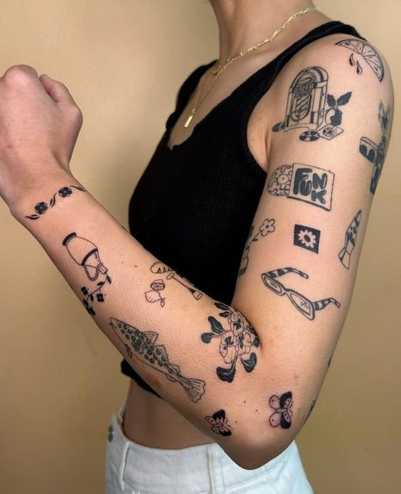 Motívumaik lehetnek hasonlóak vagy véletlenszerűek, egy vagy több stílusban készültek, színesek, fekete-fehérek vagy kombináltak. Egy dolog azonban változatlan marad - ez több kicsi és első pillantásra független rajz, amelyek közös kompozíciót alkotnak a testen. Ezek a tetoválások mérete és összetettsége eltérő lehet.