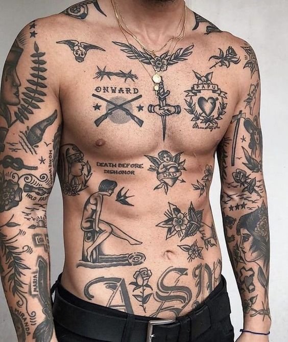 A patchwork tetoválás története arra az időre vezethető vissza, amikor a tengerészek pigmentáltak testüket utazásaik és élményeik emlékére.