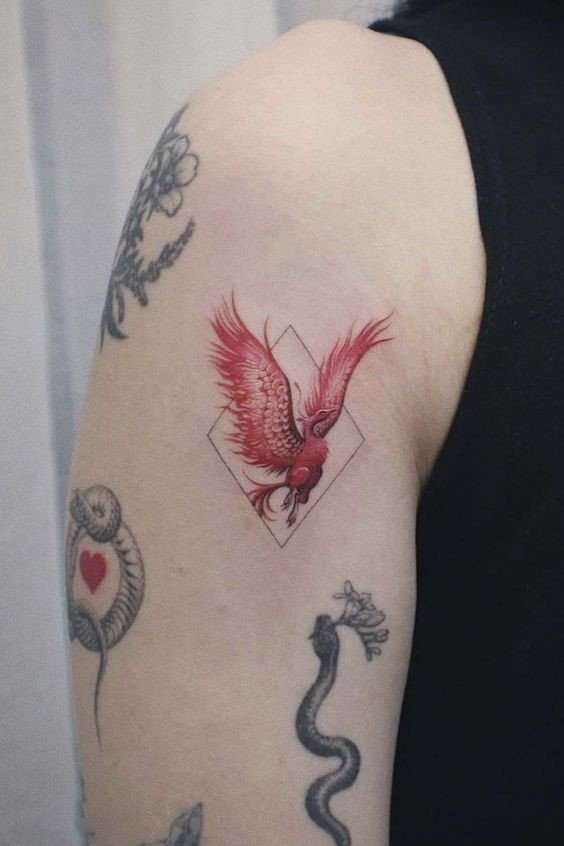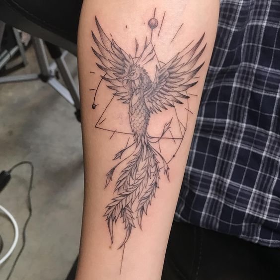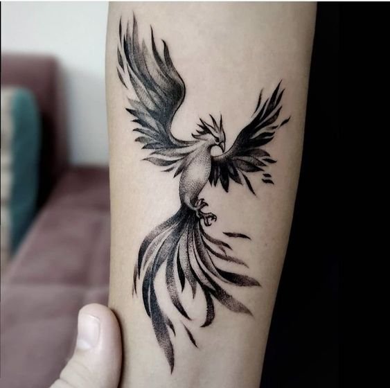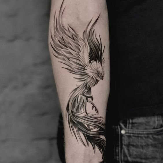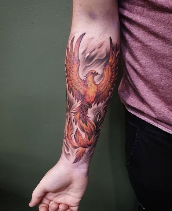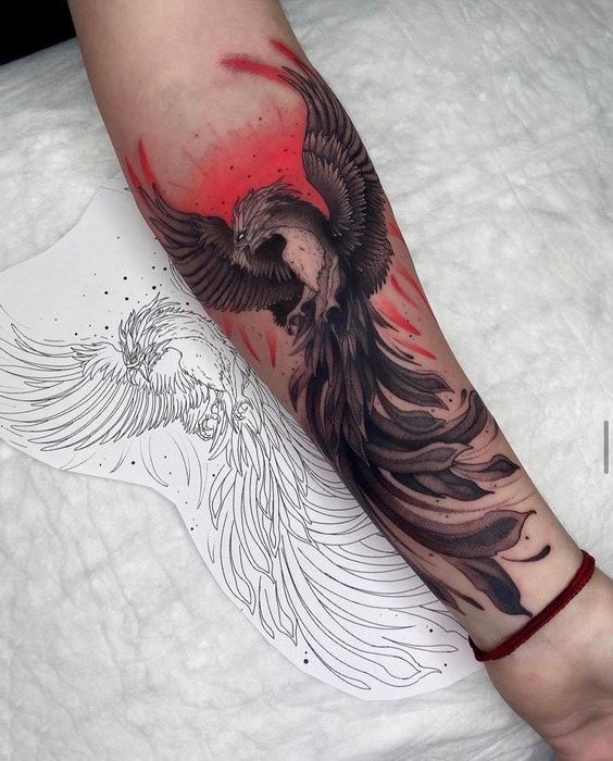 A főnix képe római pénzérmék díszeként szolgált, a halhatatlan Róma Birodalmát jelző jelként. Egyes legendák szerint a főnix akkor szerzett örök életet az Édenkertben, amikor nem egyezett bele, hogy megkóstolja a fáról a tiltott gyümölcsöt. Elég gyakran van egy tűzből kirepülő főnix képe, ami akaraterőt és győzelmet jelent. Egy ilyen kép nagyon népszerű, ebben a tetoválásban a tűz a halál, a főnix pedig a halál és az élet minden nehézsége feletti győzelem jele. Ezenkívül egy ilyen tetoválás az újjászületésről, az élet új kezdetéről beszél. Gyakran előfordul, hogy a tűzből kirepülő főnix tetoválását erős akaratú emberek választják, akik sok nehézséget tapasztaltak, nem törtek meg, minden bajt a múltban hagytak, és folytatják életútjukat.