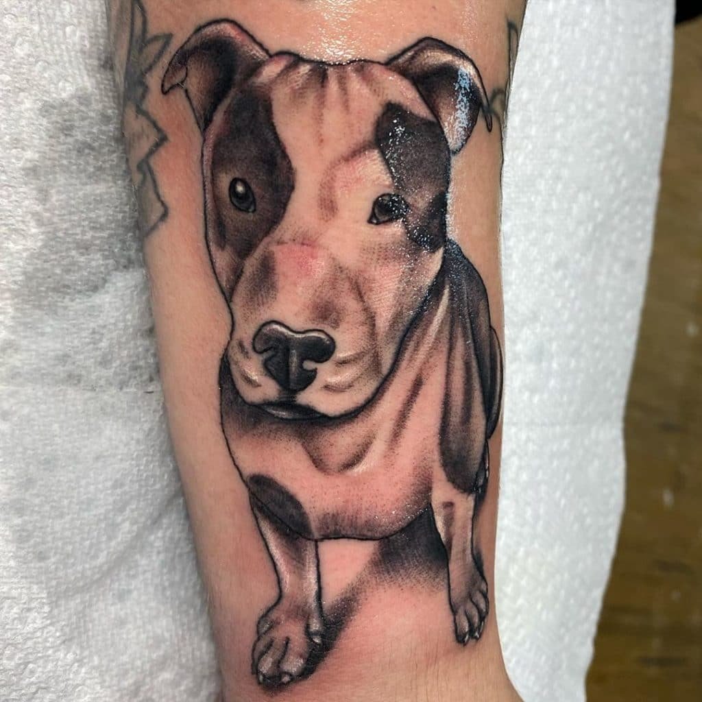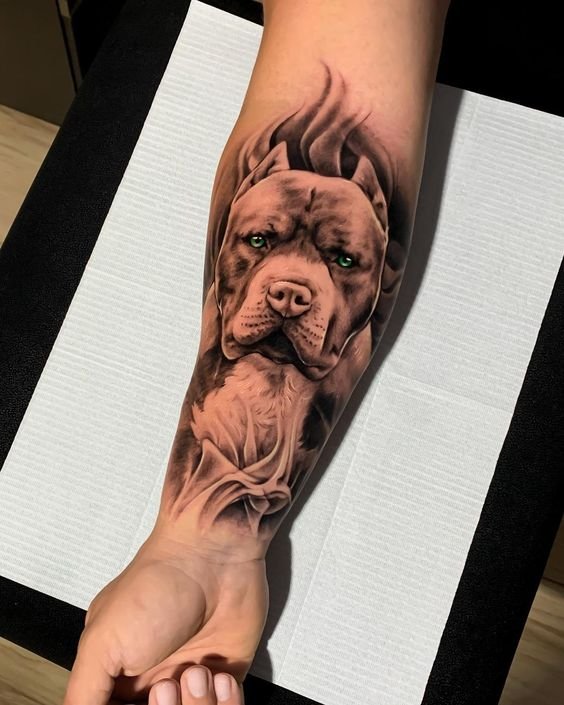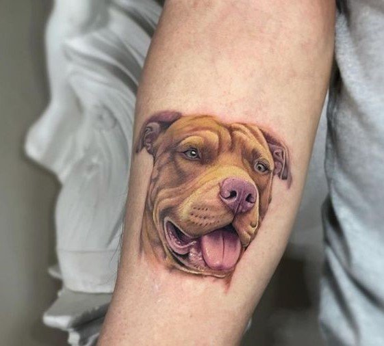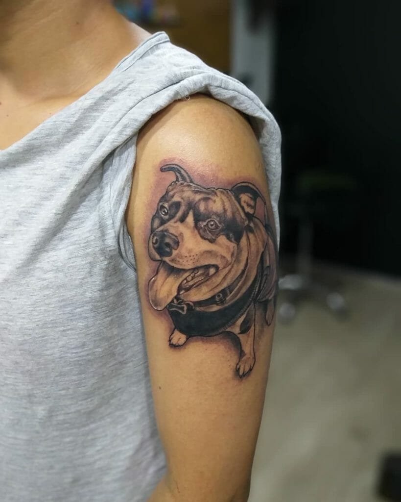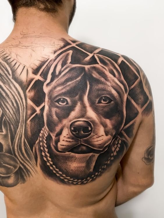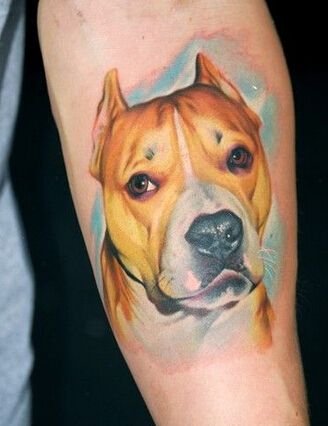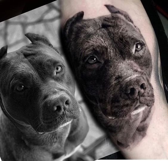 A pitbullról készült tetoválási vázlat meleg érzéseket hordozhat ezzel a kutyafajtával kapcsolatban. Az emberek gyakran egy kutya képét tömik a testükre, hogy megörökítsék szeretett kedvencüket. Ebben az esetben lehet egy négylábú barát valósághű portréja, vagy egy kutya absztrakt képe, vagy tetoválás tetszőleges stílusban. Ha a kutya képe mellett két dátum is szerepel, nagy valószínűséggel így örökítette meg a gazdi elhunyt barátja emlékét.