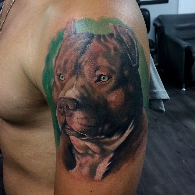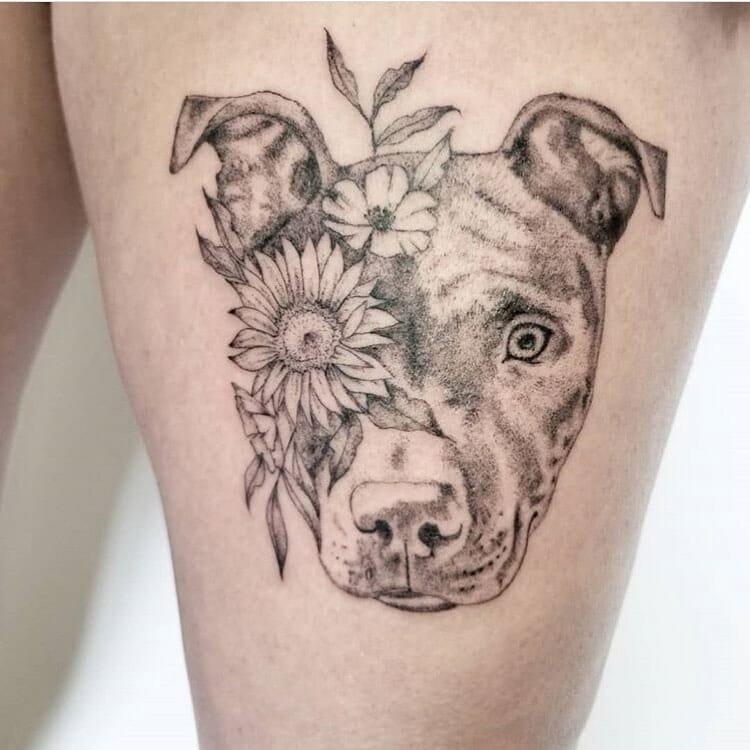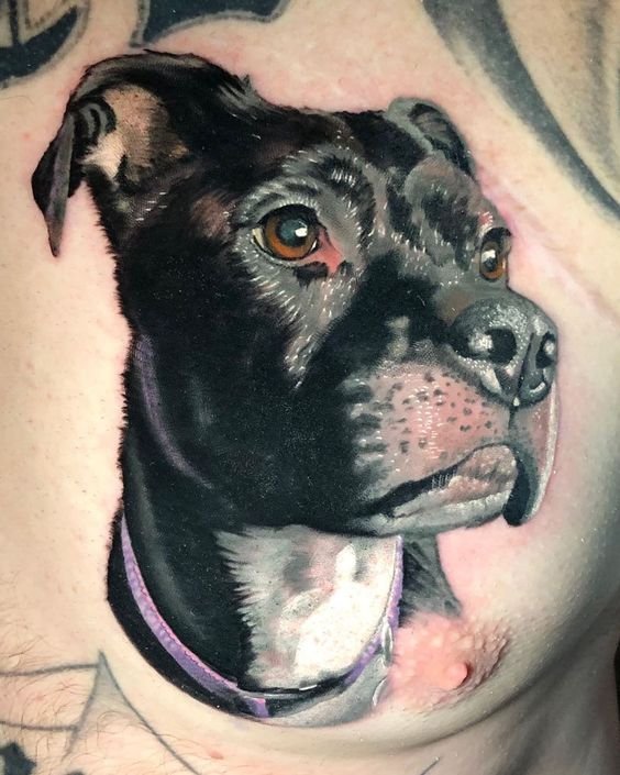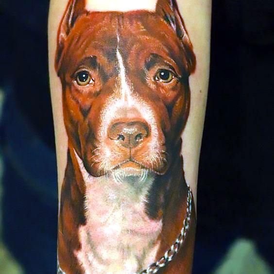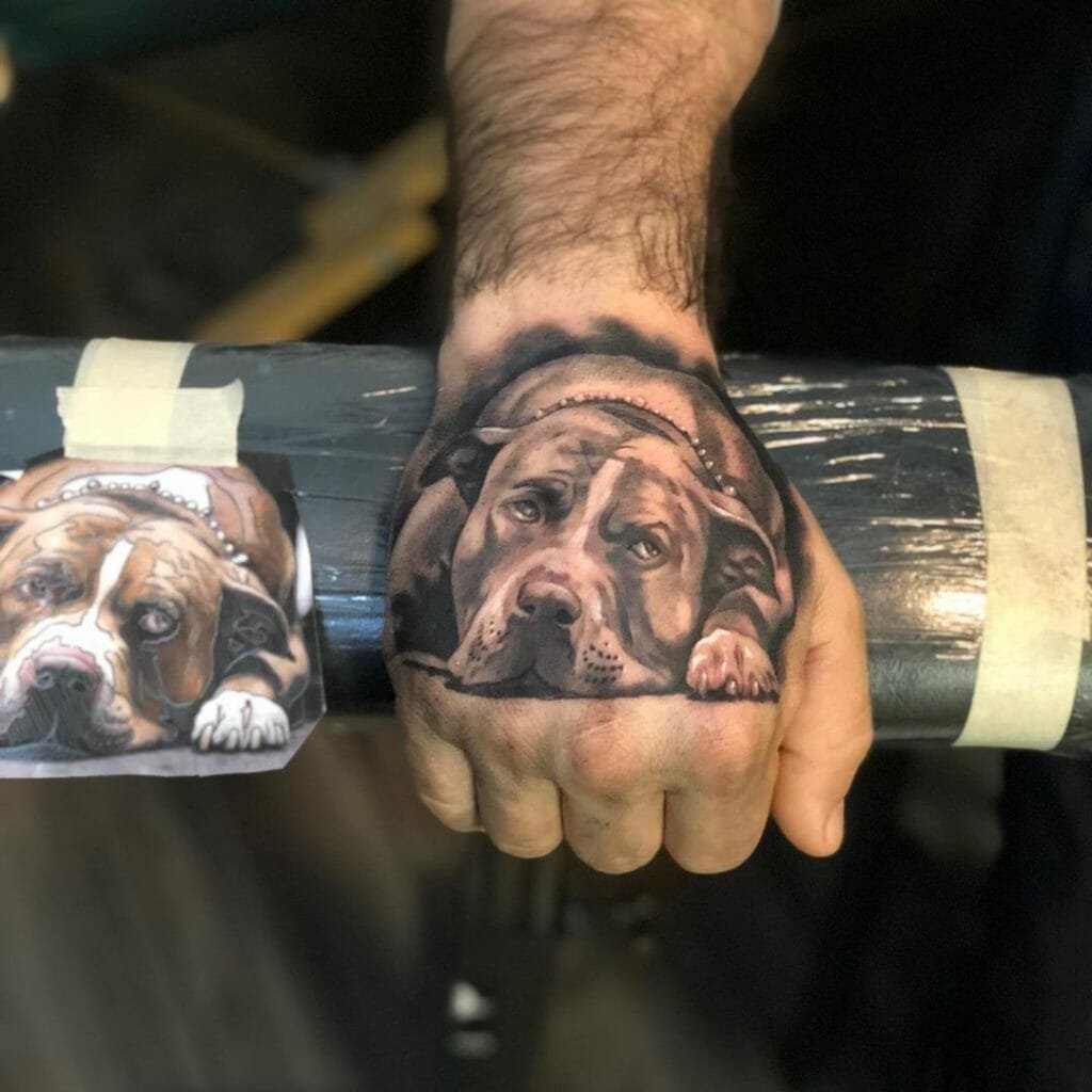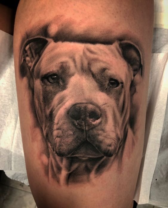 A pitbullról készült tetoválási vázlat meleg érzéseket hordozhat ezzel a kutyafajtával kapcsolatban. Az emberek gyakran egy kutya képét tömik a testükre, hogy megörökítsék szeretett kedvencüket. Ebben az esetben lehet egy négylábú barát valósághű portréja, vagy egy kutya absztrakt képe, vagy tetoválás tetszőleges stílusban. Ha a kutya képe mellett két dátum is szerepel, nagy valószínűséggel így örökítette meg a gazdi elhunyt barátja emlékét.