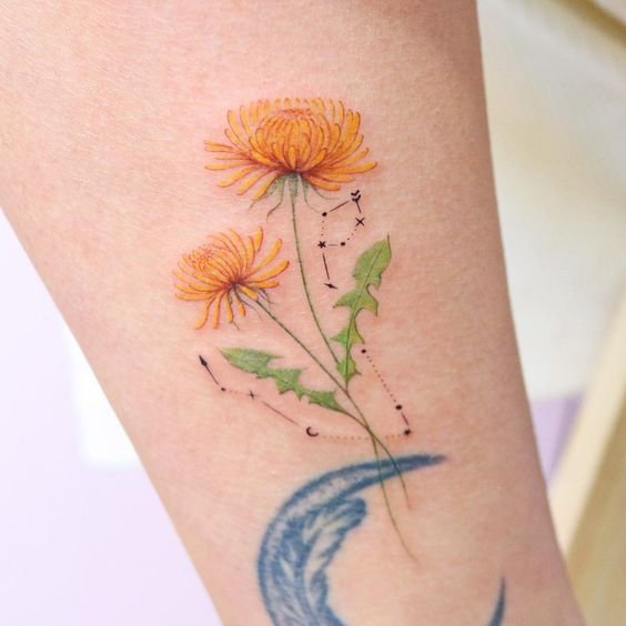 A virág kedvelői gyakran a pitypang képét választják tetováláshoz.
