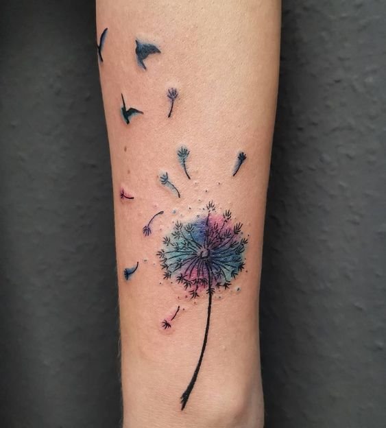 A legnépszerűbb kép a pitypang rajza, amelyről magok helyett madarak szórnak ki. Mivel a képen madarak vannak, ezt a képet a szabadság és a függetlenség szereteteként értelmezik. Egy ilyen tetoválás nagyon szép lesz a nagy területű helyeken, ahol a kép minden lényegét és szépségét közvetíti. Ez lehet a hát, a lapocka, az alkar.