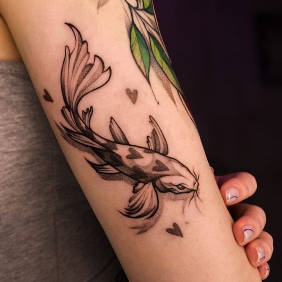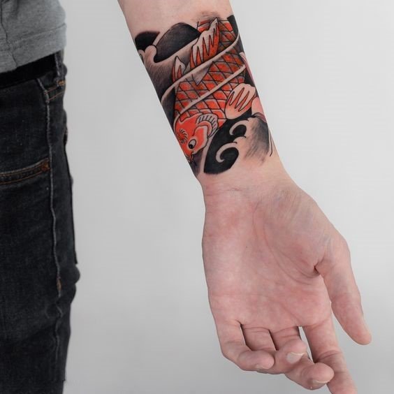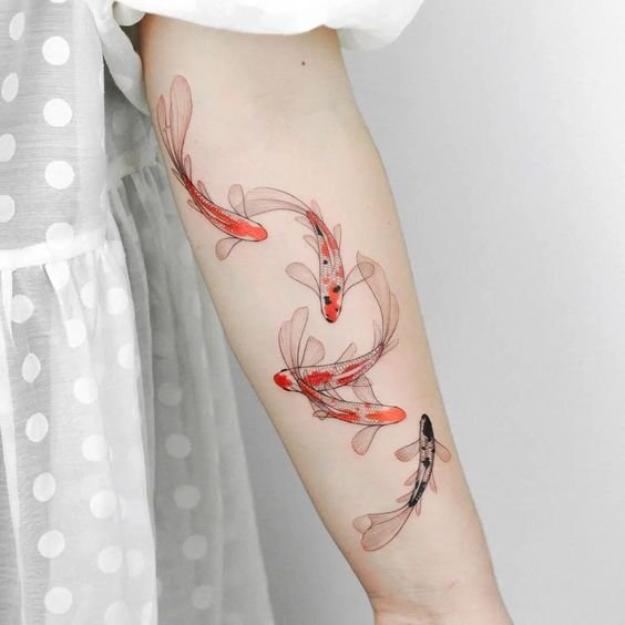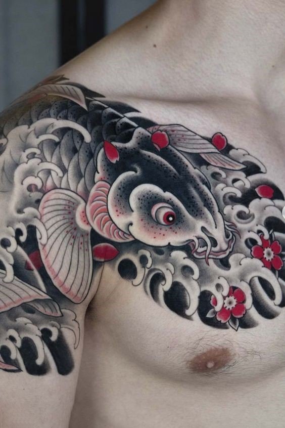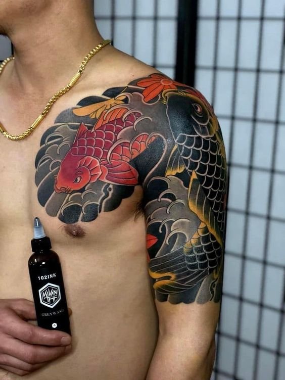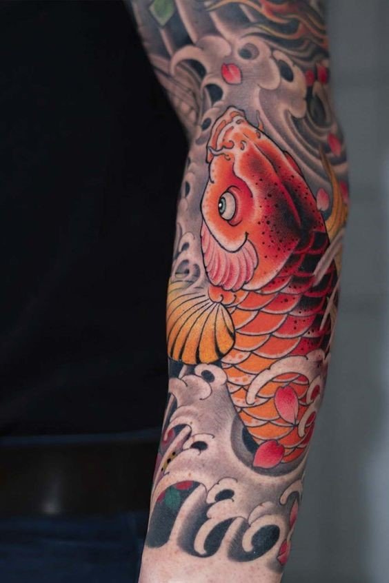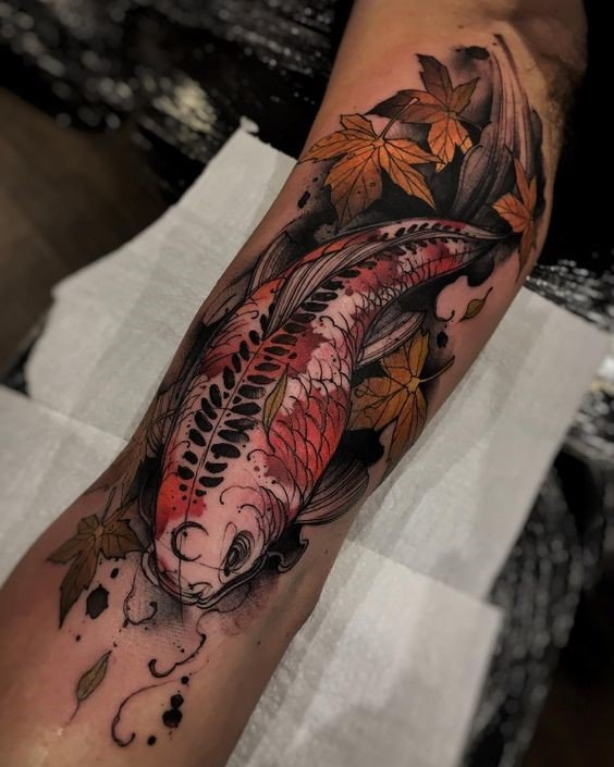 A koi élet állandó küzdelem az árammal, élelem keresése, sok kilométer leküzdése. Ezért a haltetoválás az állandó küzdelem jele, az akaraterő és az életvágy jele. Egy ilyen tetoválás a legalkalmasabb azoknak a céltudatos egyéneknek, akik nem állnak meg az útközben felmerült akadályoknál, hanem megoldják a problémát és továbbhaladnak a cél felé.