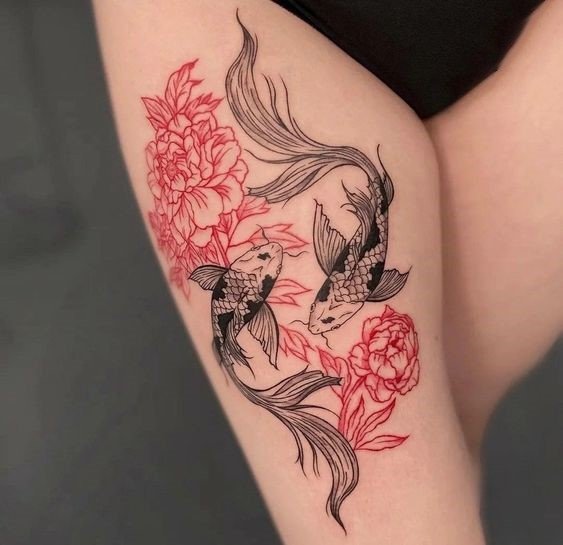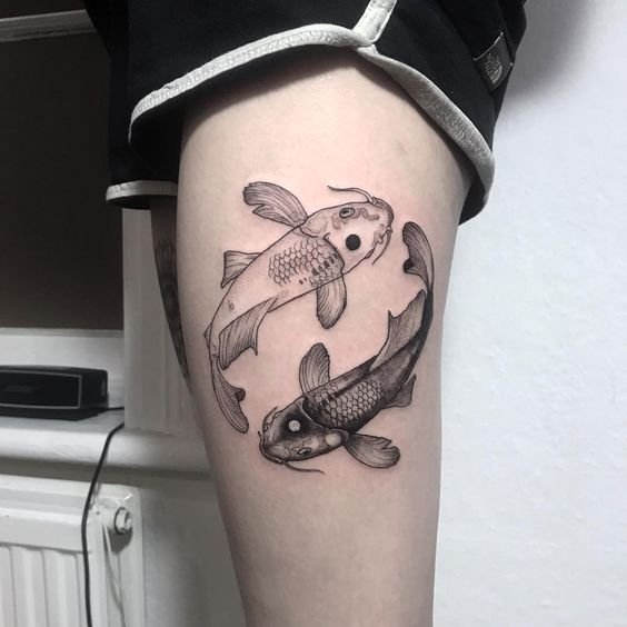 Két ponty egy tetoválásban harmóniát képvisel a férfi és nő közötti házassági kapcsolatokban.