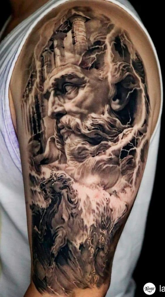 - Ha a tetoválás Poszeidón szekerét ábrázolja, egy ilyen kép azt jelzi, hogy tulajdonosa valószínűleg szorosan kapcsolódik a tengerhez;