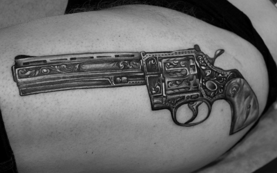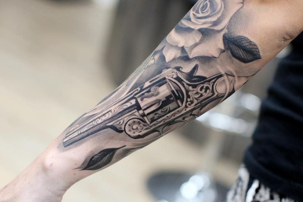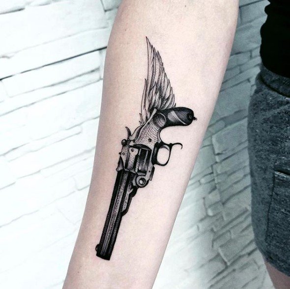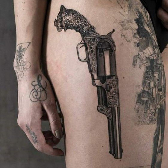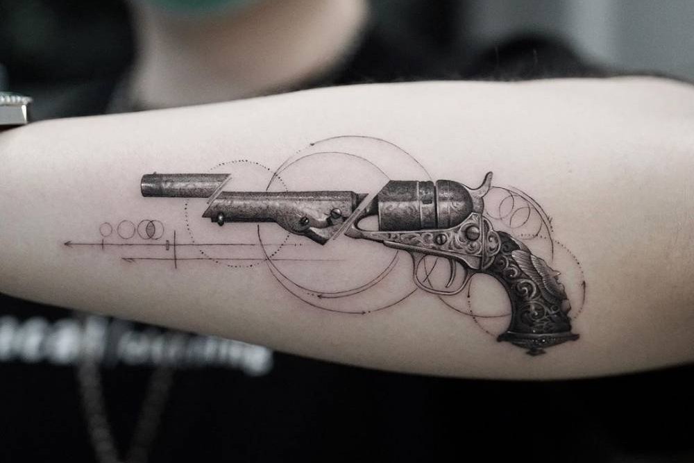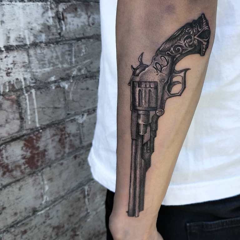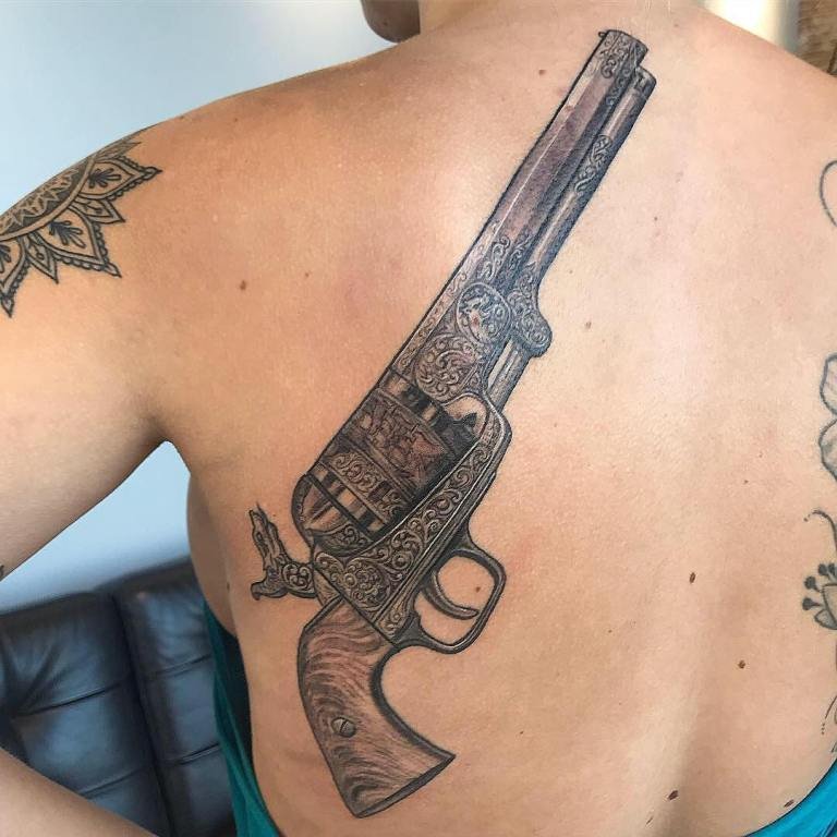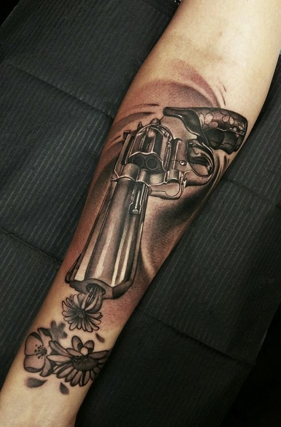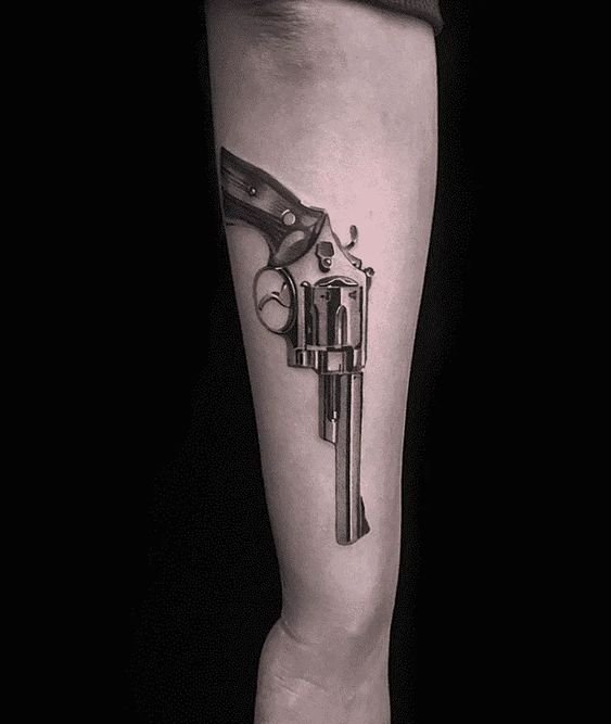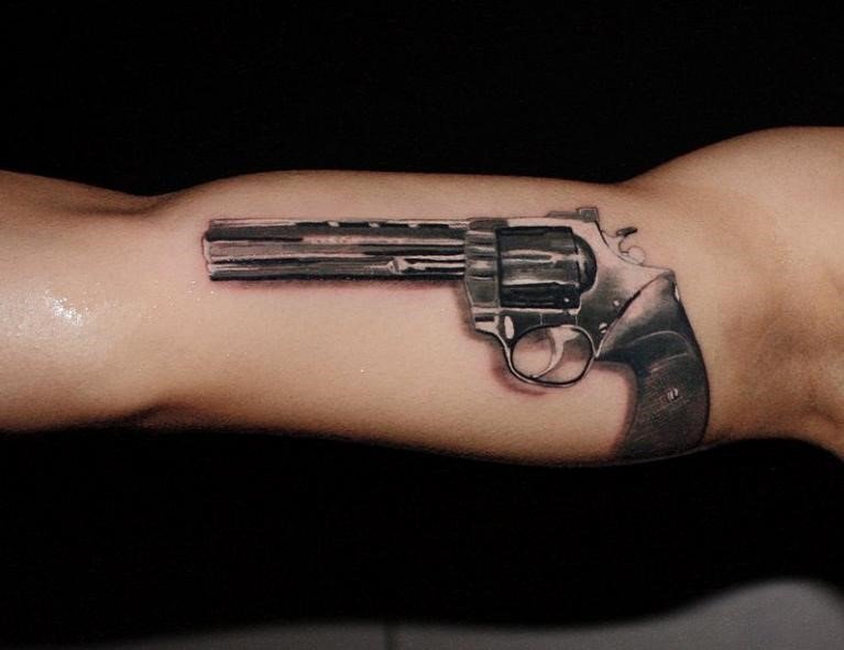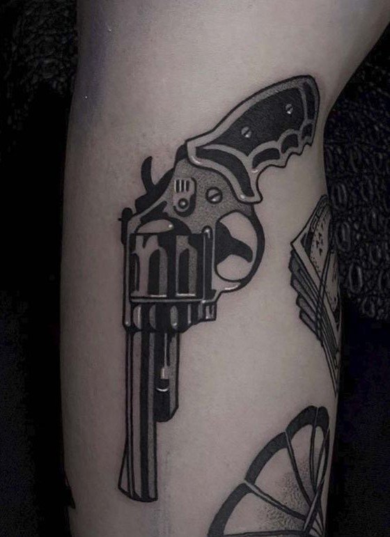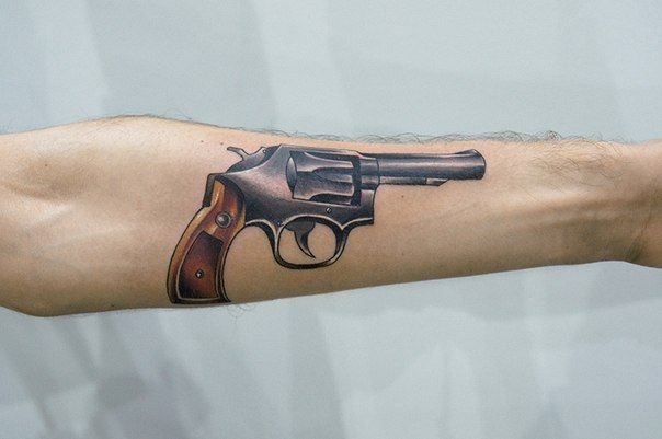 Sok népszerű kép van a tetováló iparban, amelyek közül az egyik a revolver képe, amely nem olyan régen jelent meg ebben a művészetben.