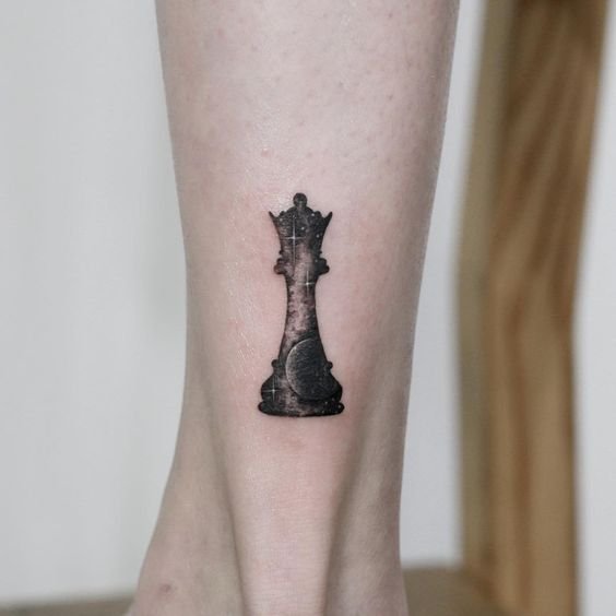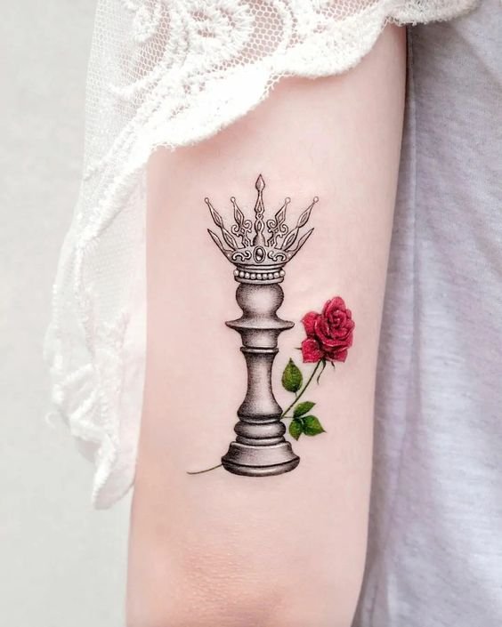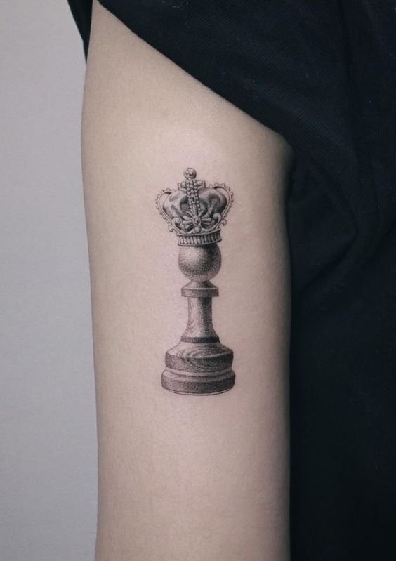 A király a sakktábla legalapvetőbb és legfontosabb figurája. Az ilyen alakkal rendelkező tetoválás tulajdonosai meglehetősen uralkodó és erős akaratú emberek. Született vezetők ezek, akik mindig elérik céljaikat. A társadalomban a király képével ellátott tetoválás tulajdonosai hozzászoktak ahhoz, hogy a figyelem középpontjában legyenek, és nagyon gyakran még véleményüket is rákényszeríthetik másokra.