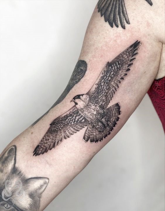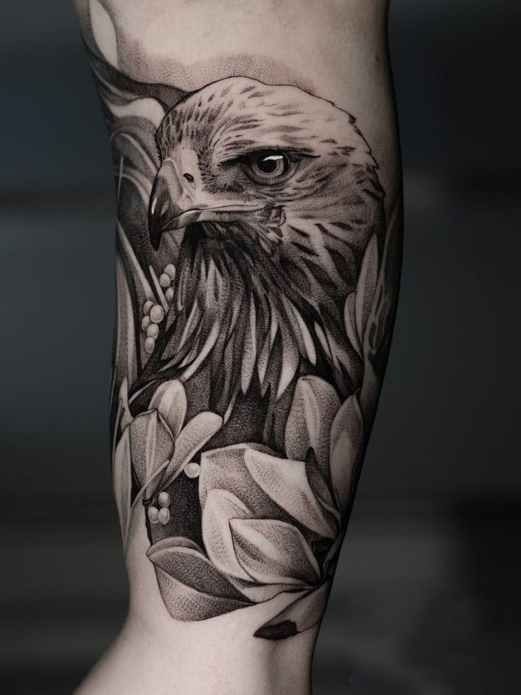 Az érték mellett egy kiváló minőségű sólyomtetoválás tökéletesen kiemeli tulajdonosa férfiasságát. A leglenyűgözőbben a tetoválás a realizmus stílusában néz ki.