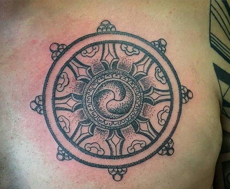 - Gyakran egy további kép kerül a kör belsejébe, de ennek és jelentésének kiválasztásakor óvatosnak kell lennie. Mert általában a tetoválás a körben lévő dolgok állandóságát jelzi.
